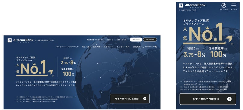 オルタナティブ投資プラットフォーム「SAMURAI FUND」は、「Alterna Bank(オルタナバンク)」へブランドリニューアルいたしました。
