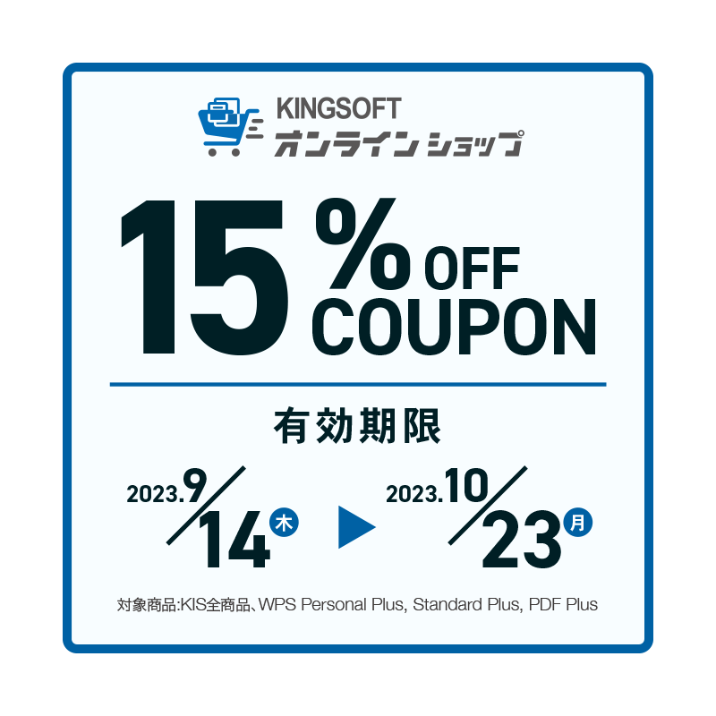 【参加賞】キングソフト公式オンラインショップで使える15%OFFクーポン(応募者全員)