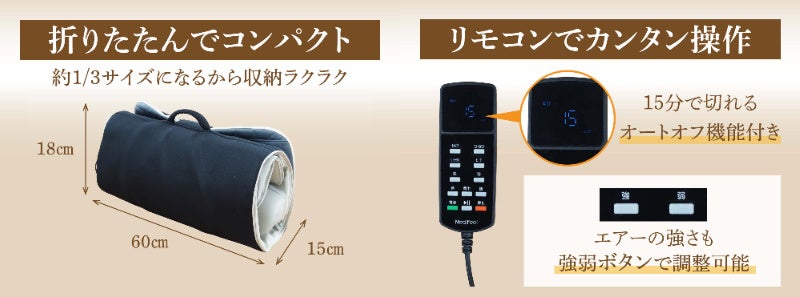 背中の温熱ヒーターで温めながらリラックスしてストレッチの時間を楽しめます。その他、首の位置調節が可能で適応身長150㎝~180㎝と身長の差にかかわらず使えます。15分のオートオフ機能付きです。また、使用しない時はコンパクトに折り畳めるので収納にも困りません。