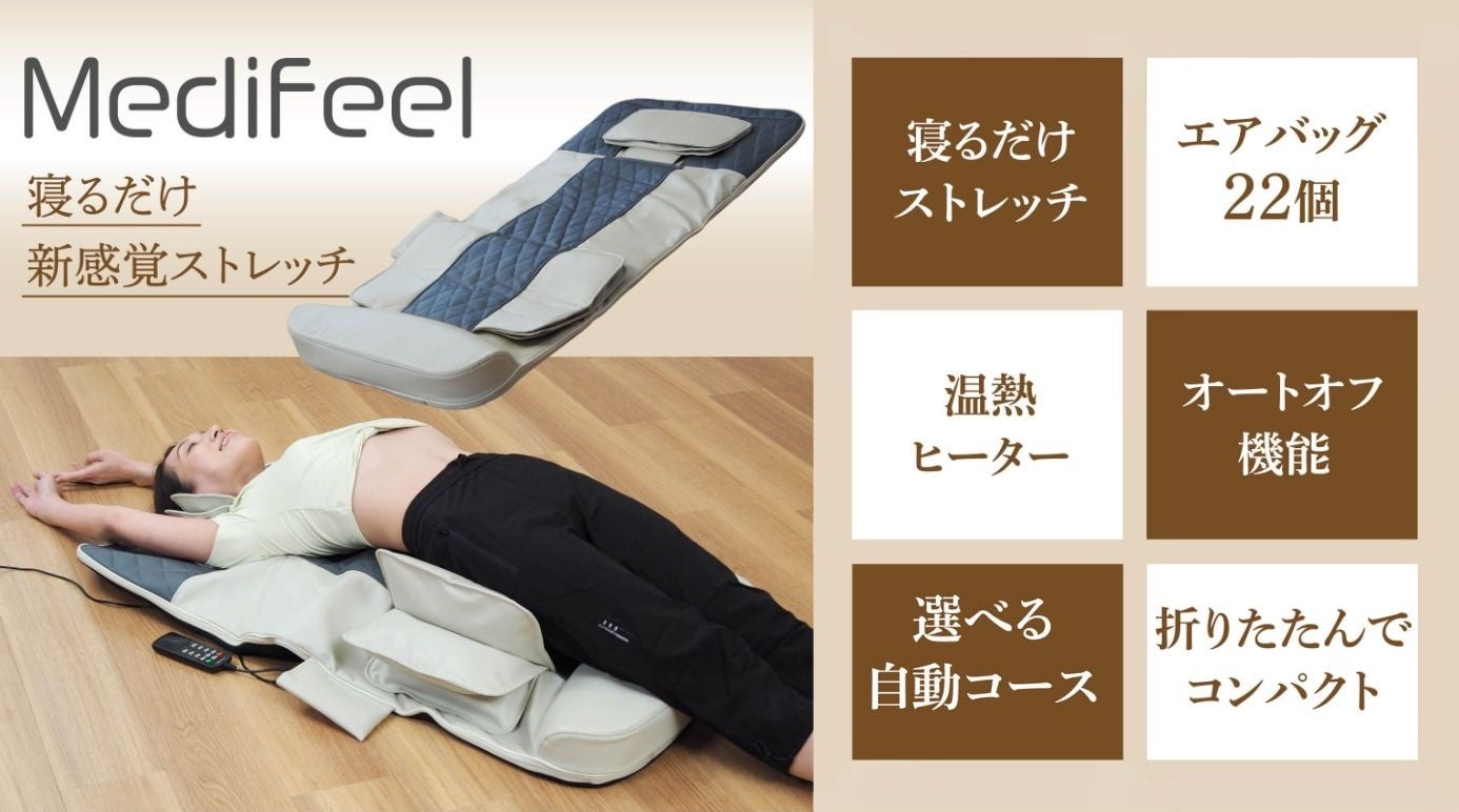 Medifeel立体エアーマットは正しい方法で手軽にストレッチができる商品です。マットの上に寝るだけで、普段なかなか行き届かない箇所のストレッチをサポートします。