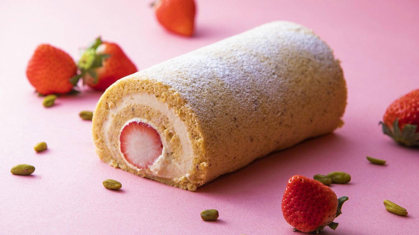 エグゼクティブ シェフ・パティシエ日吉の名を冠した人気スイーツ。口当たりの良いピスタチオクリームといちごを、ピスタチオ風味の生地でロールしました。
