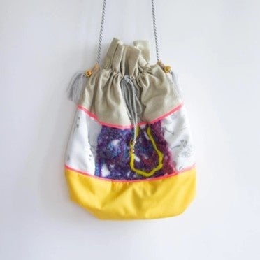 “生活に寄り添うアート”をコンセプトに、絵画のようなポップな配色が人気のニット作家。マフラーやバッグなど、すべて一点物の作品が並ぶ。