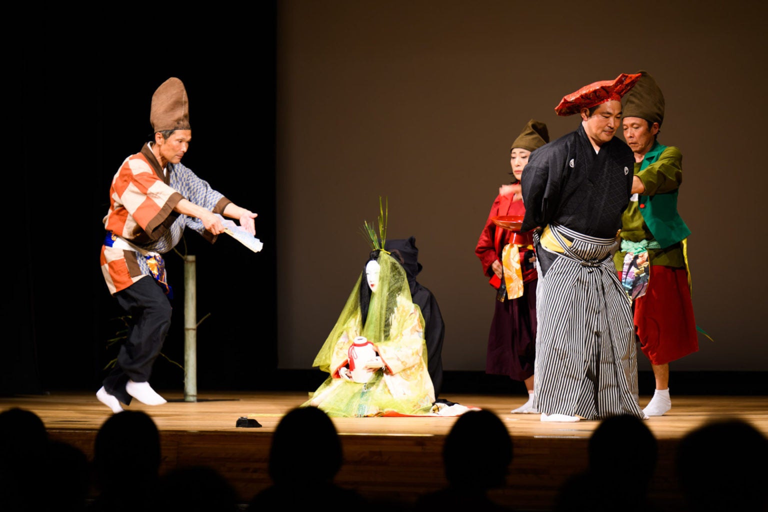 人形師×クラウン×民俗芸能×和楽器=抱腹絶倒・至極のオリジナル創作和物芝居!日本最古の狂言台本「天正狂言本」の中の阿智村園原に関する記述や、古代東山道に関わる史実などを題材にして、新たな地域芸能として生み出された、抱腹絶倒の歴史寸劇です。