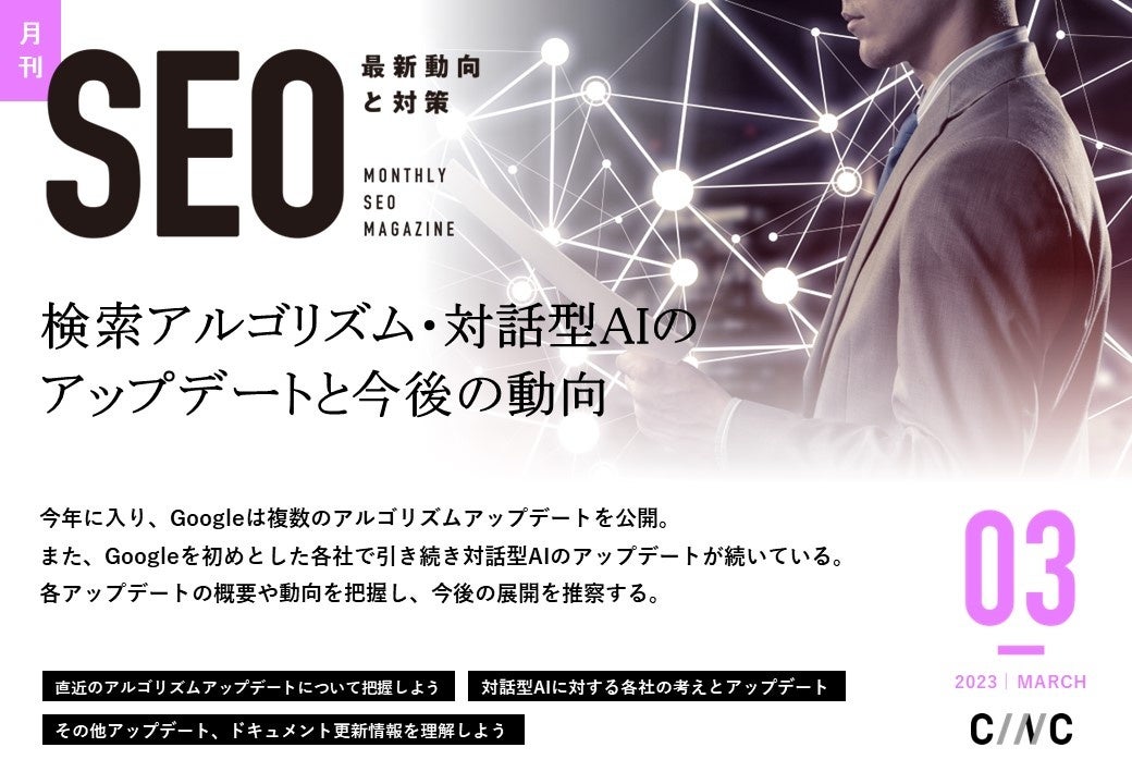 株式会社CINC(東京都港区 代表取締役社長 石松友典、以下 CINC)は、毎月特定のテーマのSEO最新動向と対策についてレポートする「月刊SEO」の3月号を公開しました。