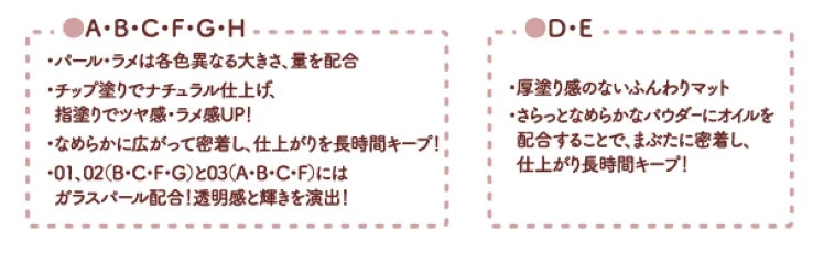 異なる色・質感で自分好みのアイメイクが楽しめます。