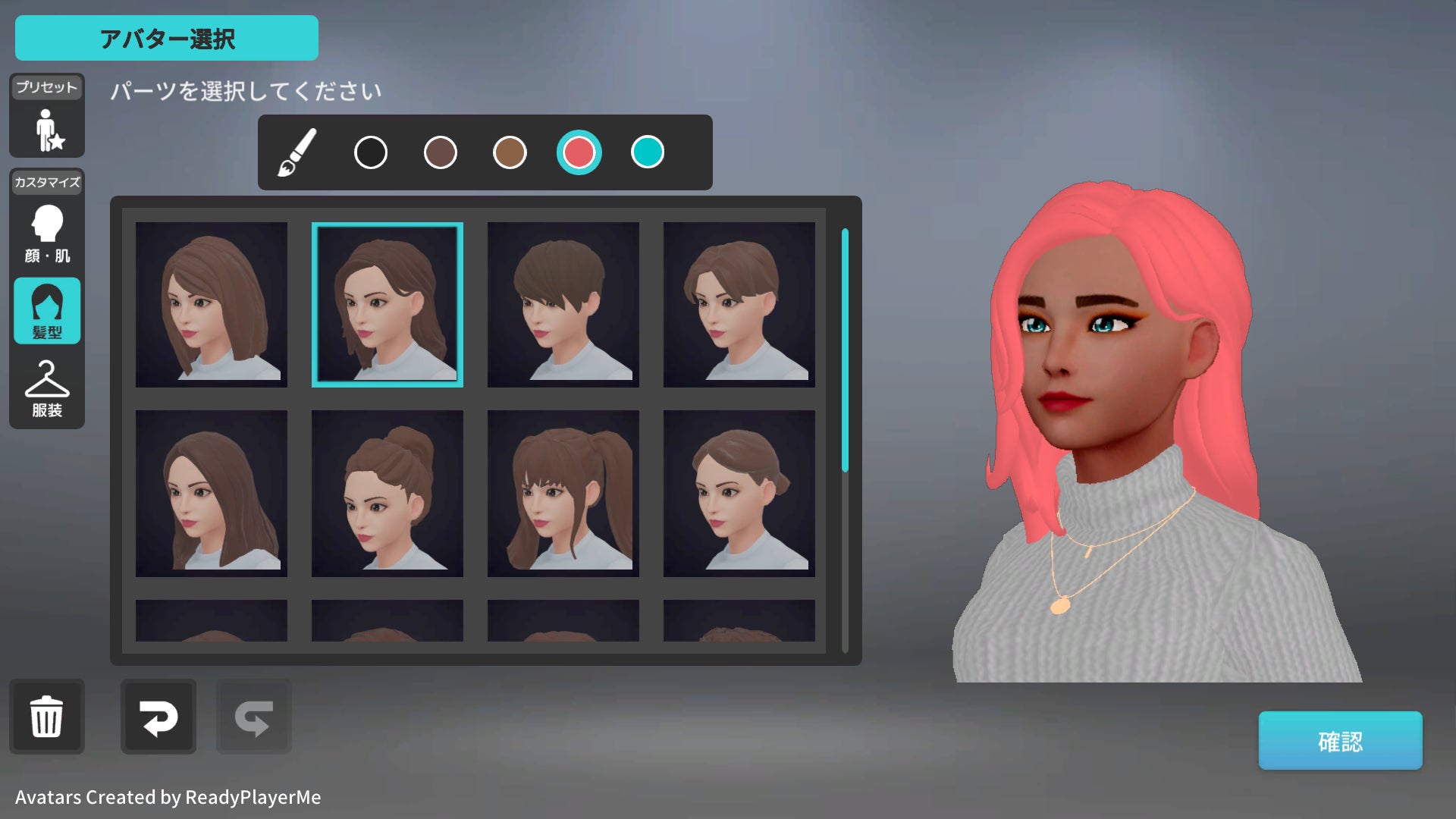 アバターカスタマイズ機能では、複数のパーツやオプションを選ぶことで、顔や髪型、服装などを細かく設定でき、自分らしいアバターを簡単に作成できます。また、肌や瞳、髪の色なども用意しており、他のユーザーと差別化したアバターを作ることが可能です。
