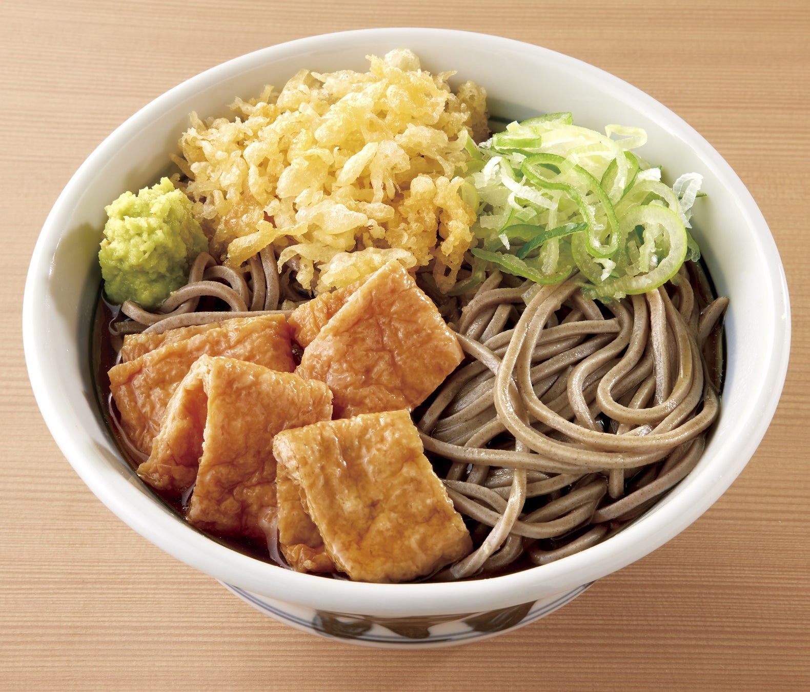 出汁は中京地域では馴染のある甘みが際立つ出汁で、まろやかな旨みと甘みが口いっぱいに広がり、思わずほっとする味わいに仕立てました。麺によく絡み、甘いお揚げや天かすとの相性もよく、一口ごとにご満足いただけます。