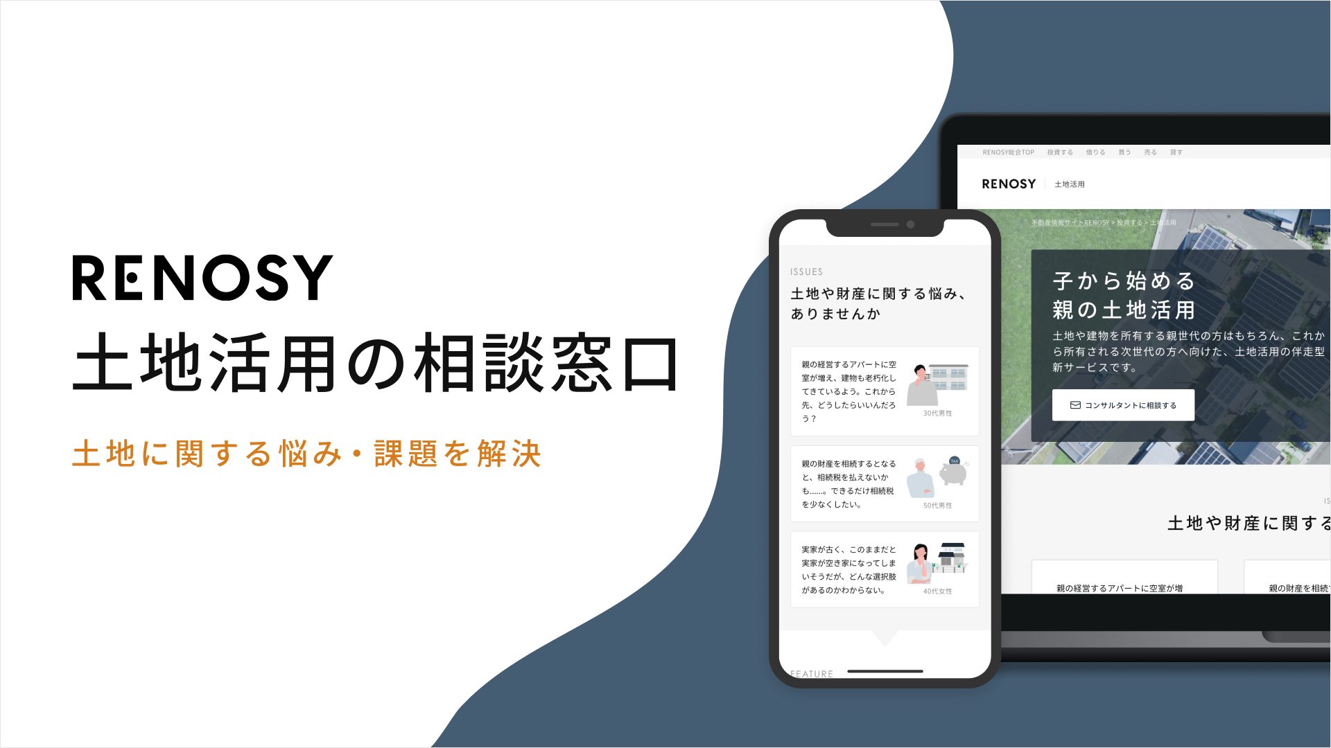 ネット不動産のRENOSYは、新規事業として土地所有・相続に悩む方々へ向けた「RENOSY 土地活用の相談窓口(以下「本サービス」)」を開始します。