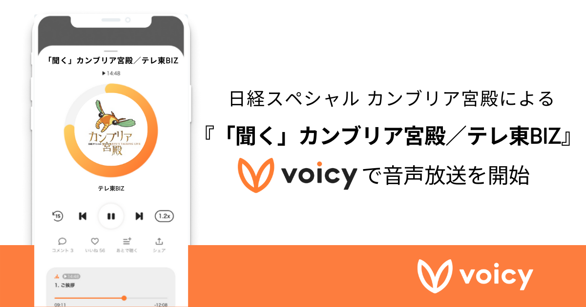 あの「カンブリア宮殿」がVoicyで音声放送をスタート。その名も『「聞く」カンブリア宮殿』。忙しいビジネスパーソンに企業のストーリーを声でお届けします。