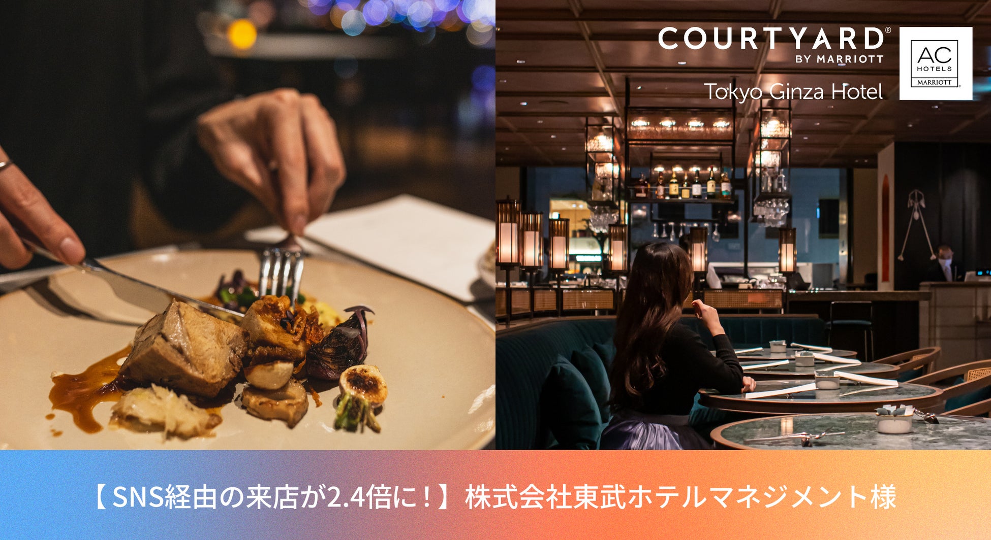 株式会社東武ホテルマネジメント様が運営する、「コートヤード・マリオット銀座東武ホテル」、「ACホテル・バイ・マリオット東京銀座」の2つのホテルでは、ホテル内の飲食店への来店促進を目的にInstagram運用を実施しております。