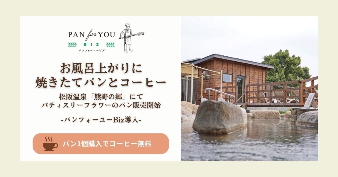 地域のパン屋さんと消費者をつなぐプラットフォームを運営する株式会社パンフォーユー(本社:群馬県桐生市、代表取締役:矢野 健太、以下「パンフォーユー」)は、法人向け冷凍パン導入サービス「パンフォーユーBiz(https://panforyou.jp/biz)」を通じて、松阪温泉「熊野の郷」(三重県松阪市)にて、焼きたてのおいしさを閉じ込めた冷凍パンの販売を開始いたしました。
