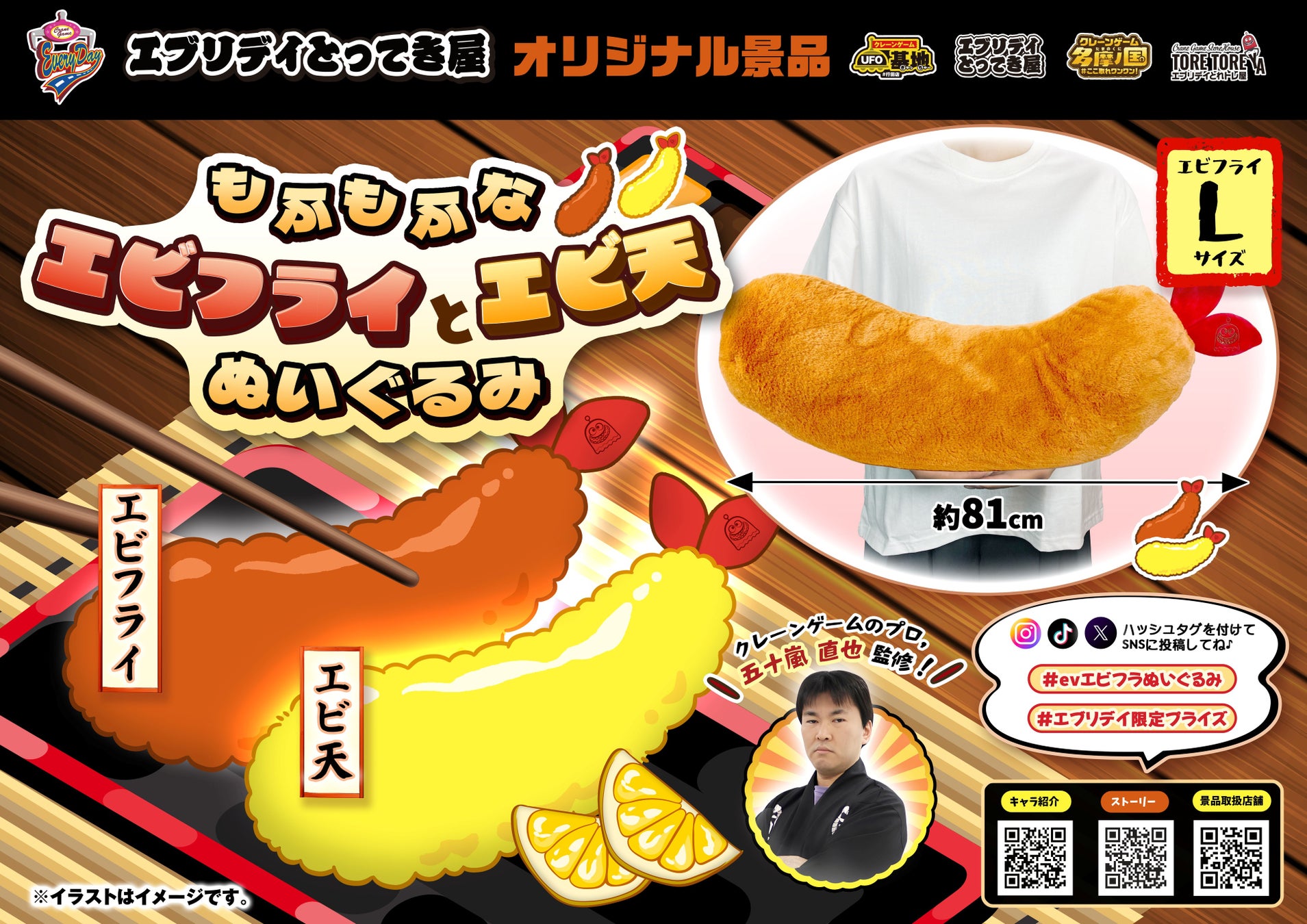 抱きしめたくなるサイズ感!「エビフライ&エビ天ぬいぐるみ」がエブリデイオリジナル景品として登場