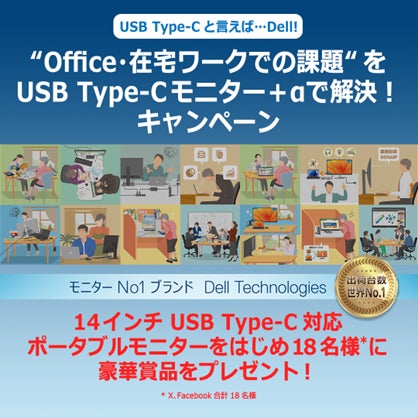 デル・テクノロジーズ、「“Office・在宅ワークでの課題”をUSB Type-Cモニター+αで解決!キャンペーン」を開催