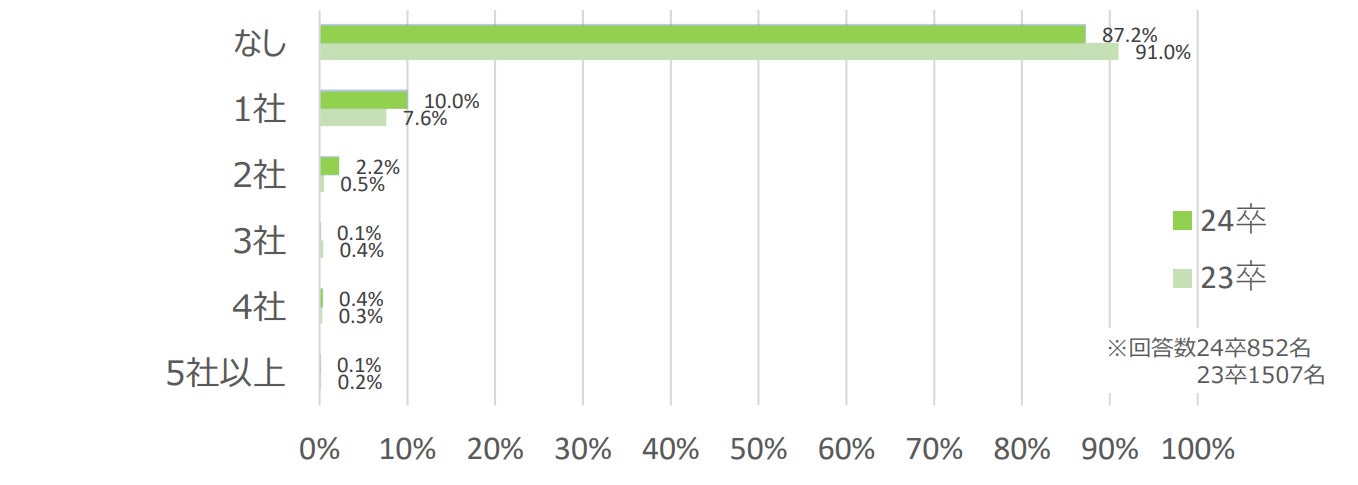3年生の12月時点で内々定を獲得している割合は、昨年同月より約4%増加し、約13%だった。