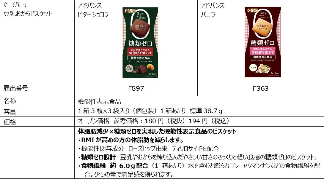1997年にデビューした栄養調整食品「ぐーぴたっ」は、今年で25周年。ダイエット中に不足しがちな栄養素を配合した、女性のキレイを応援するブランドとしてデビューしました。時代の変化に伴い進化を続けて、今までに大きなリニューアルを2回行っています。直近のリニューアルは2018年。食物繊維の他に大豆由来のたんぱく質・乳酸菌を配合した「豆乳おからビスケット」4フレーバーと、食物繊維に加え、カルシウム・鉄を配合した「しっとりクッキー」4フレーバーの栄養調整食品をパッケージ変更し、リブランディングに成功しました。その流れを受けて、2021年には日本初※3の体脂肪減少と糖類ゼロを実現した機能性表示食品「豆乳おからビスケット アドバンス バニラ・ビターショコラ」の2フレーバーを投入するなど、常に進化を続けています。コロナ禍の自粛太りを気にする人や、一般のお菓子にも健康を求める人の増加による新規購入者の増加もあり、前年比138%※4と需要を増やしています。「楽しく、飽きないダイエット」を目指す「ぐーぴたっ」は、常に新しいフレーバーの変更や、ココロを和ませるパッケージで、キレイを目指す人を応援します。※3 TPCマーケティングリサーチ株式会社 2020年11月調べ(機能性関与成分を「ローズヒップ由来ティリロサイド」とし、BMIが高めの方の体脂肪を減らす機能性表示ビスケットとして 「ぐーぴたっ 豆乳おからビスケット アドバンス バニラ」発売時/2021年3月10日))※4 2021年4月~2022年3月の前年比