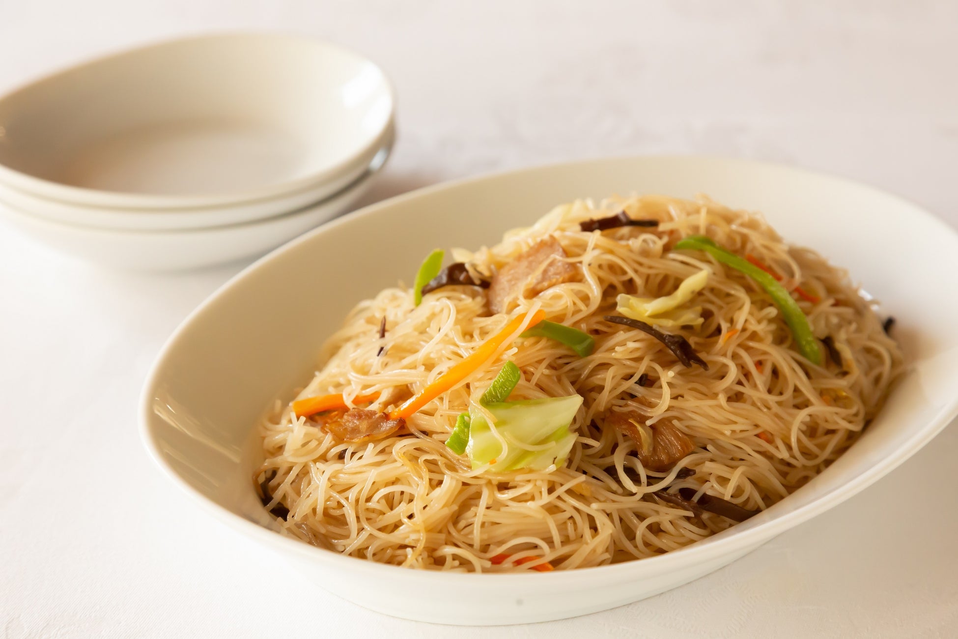 「業務用焼ビーフン」(冷凍)が採用されています。ホテルでも提供しやすく、特定原材料8品目不使用で食物アレルギーに配慮した商品です。