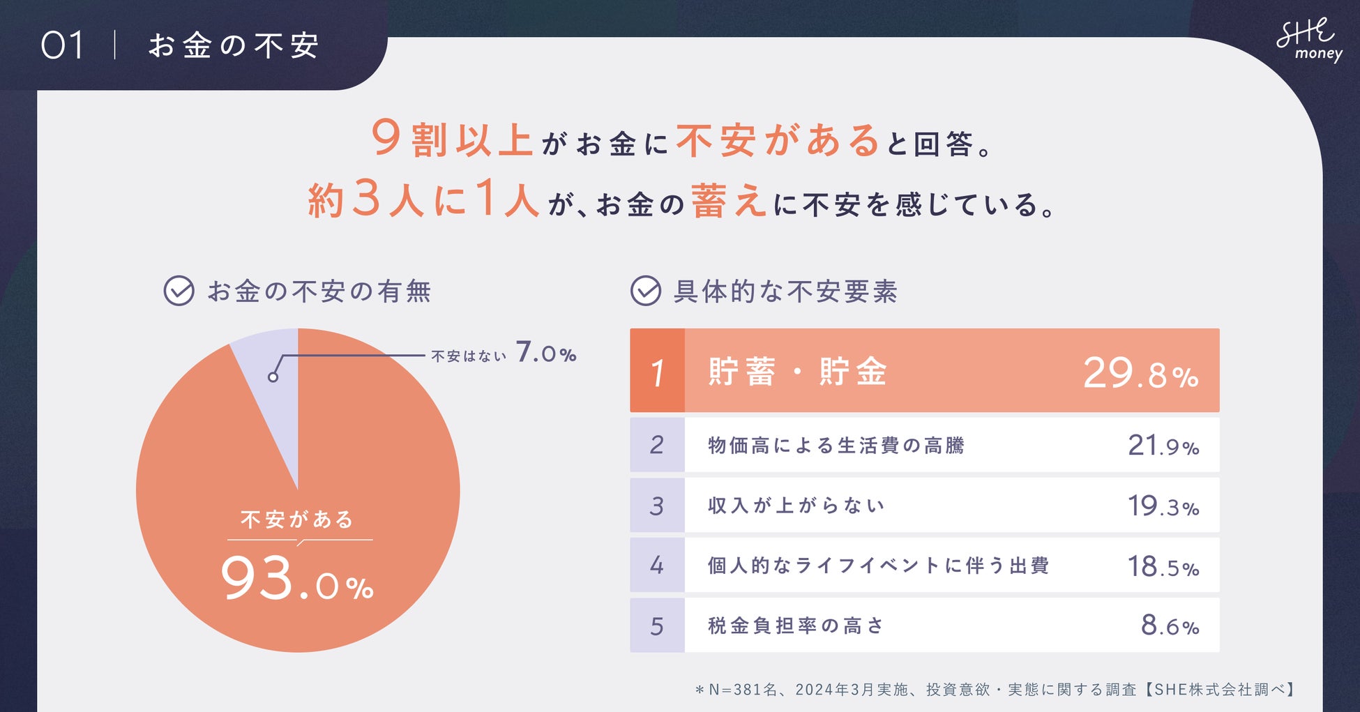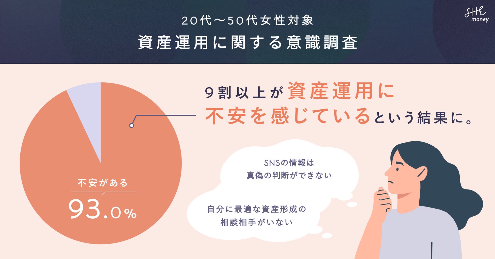 SHEmoney、女性の「資産運用に関する意識調査」を実施。新年度の資産運用について、9割以上の女性が不安を感じている結果に!
