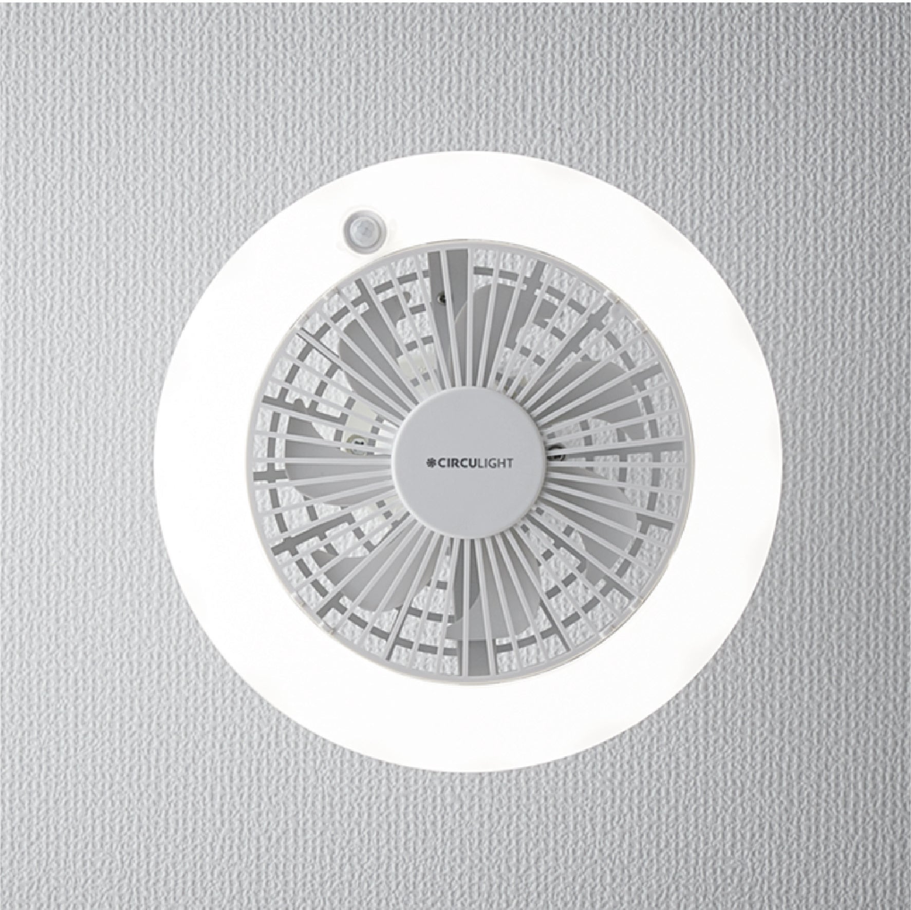 今回発売する「CIRCULIGHT人感センサー付きソケットシリーズ」は、「ソケットシリーズ」を基にしたデザインに、人感センサーを搭載した商品です。センサーが人を感知するとLEDライト部分とファン部分が起動し3分間で自動OFFされます。消灯5秒前には1段階暗くなって消灯をお知らせ。また、LEDとファンは個別にセンサーの設定が可能です。(センサー機能状態を表示するセンサーランプ付)