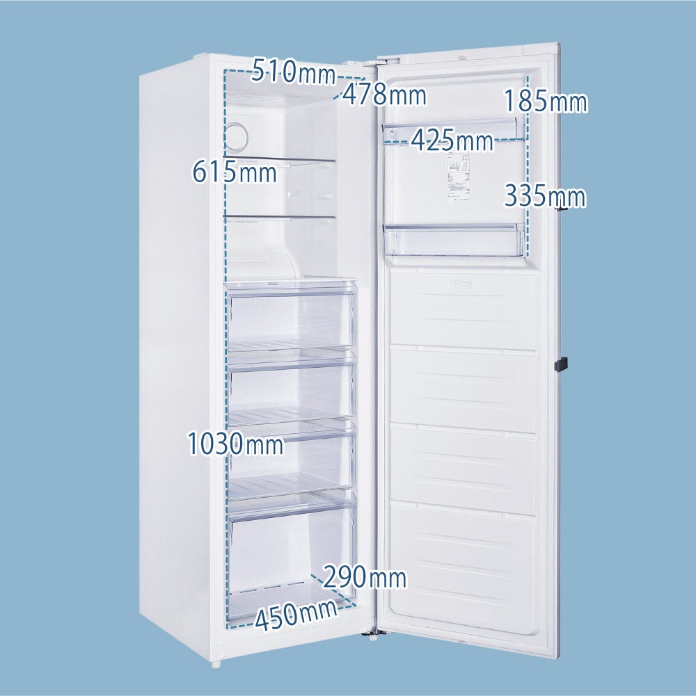 段数は最大で7段、容量は274Lもあり、たくさんの食材をストックすることができます。「冷凍庫がいつも満タンであまり買いだめできない…。」とお悩みの方に是非ともお使いいただきたい冷凍庫です。