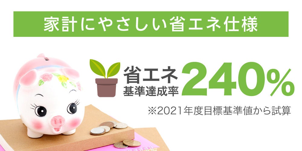 本製品は、省エネ基準達成率240%となっており、環境にもお財布にもやさしい省エネ設計です。
