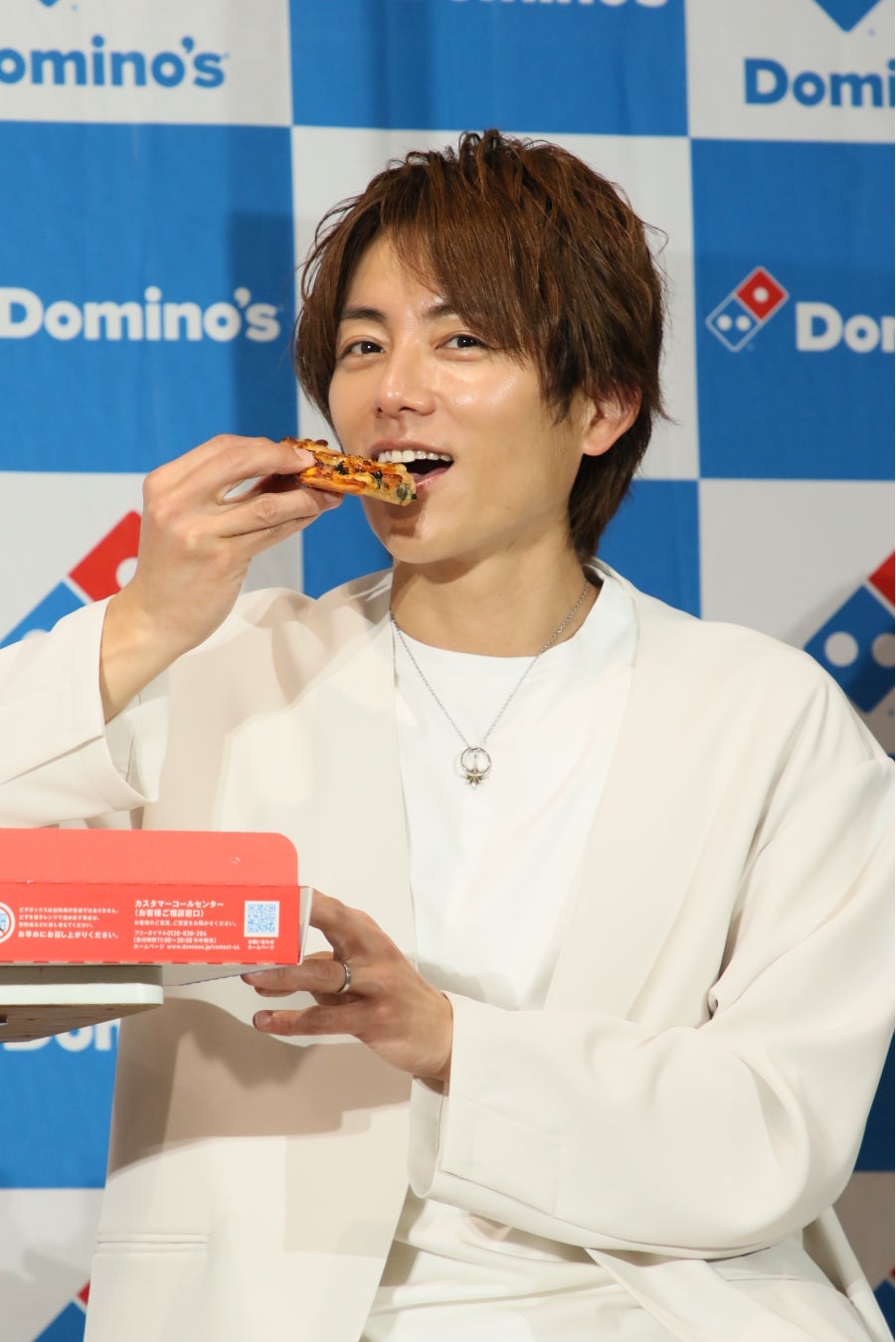 会場にデリバリーで届いたマイドミノを見た杉浦太陽さんは「自分の好きなピザとサイドを2品が入っているので満足度が高い。これなら子どもたち一人ひとりが大喜びで平和な食卓になりそうです。まさに“ケンカしないピザ”!すぐにでも取り入れたいと思います」とパパのトークを展開。試食した杉浦太陽さんは、「子どもがいると、子どもの好みに合わせることが多いものです。また子どもの間で取り合いになったり、食べたいピザが食べられていないのでは、とちょっと心配にもなります。でも、親だって、自分が食べたいピザを頼みたい日もあるし、これなら4人の子どもも自分の好きなピザを独り占めできるので嬉しいです。」と大満足の様子。