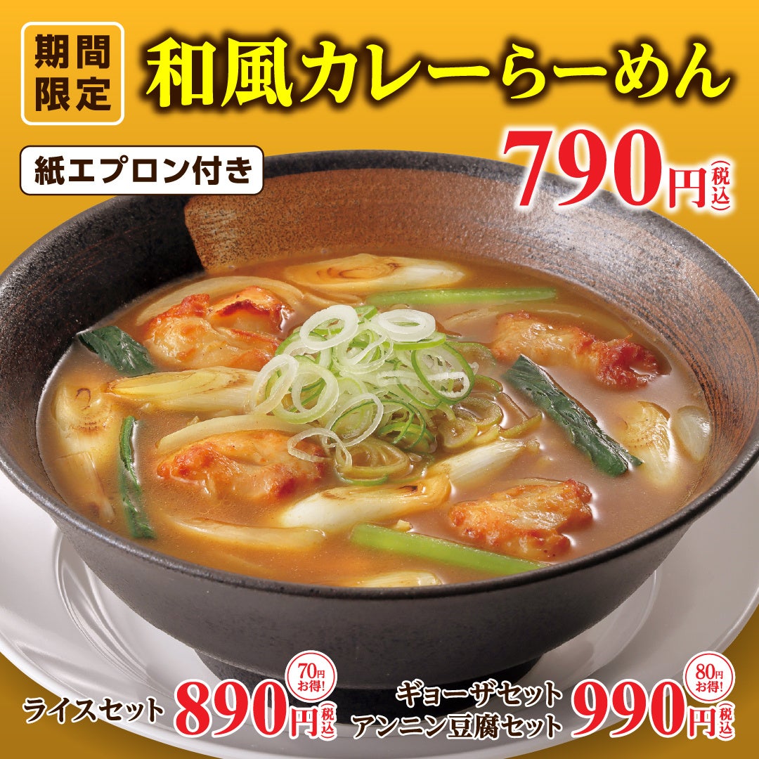 幸楽苑「和風カレーらーめん」「和風カレーつけめん」を期間限定販売!大人気!「担担麺」もリニューアルして同時販売開始!!