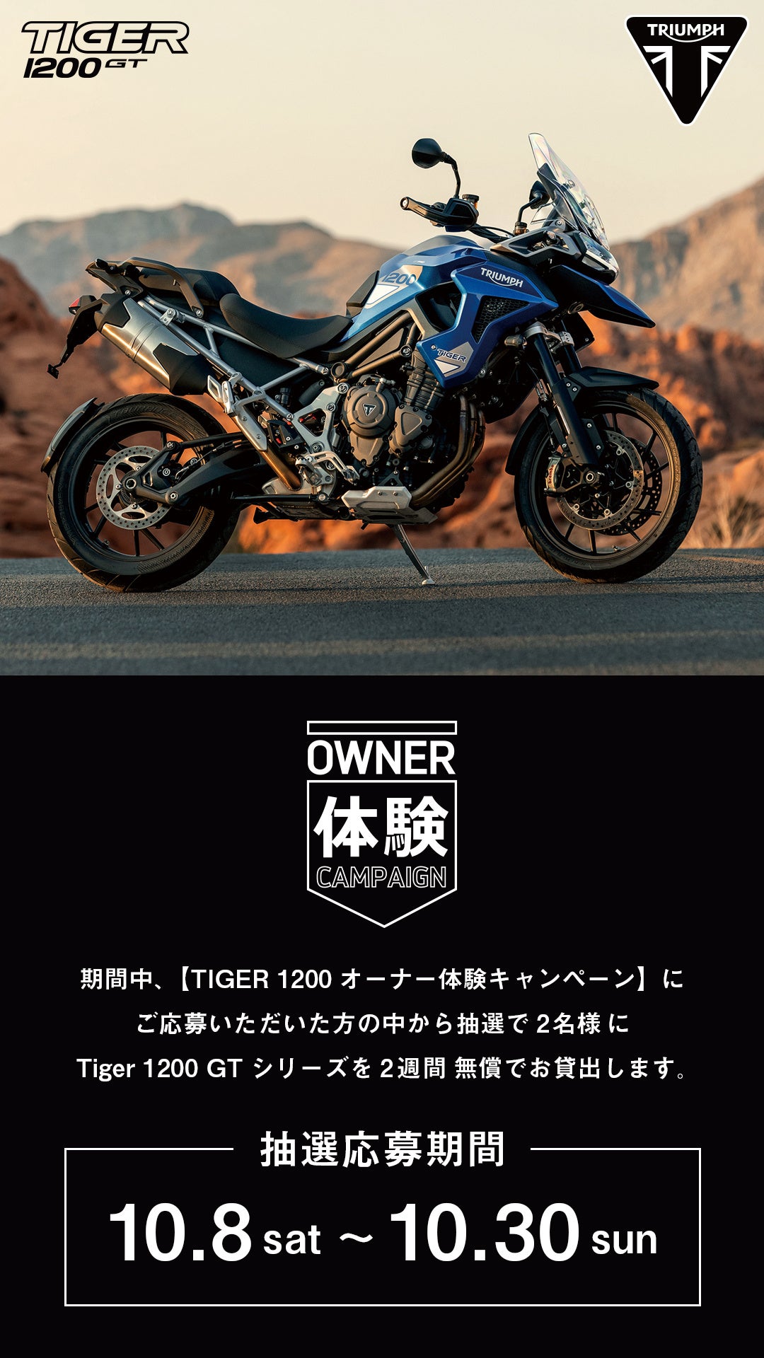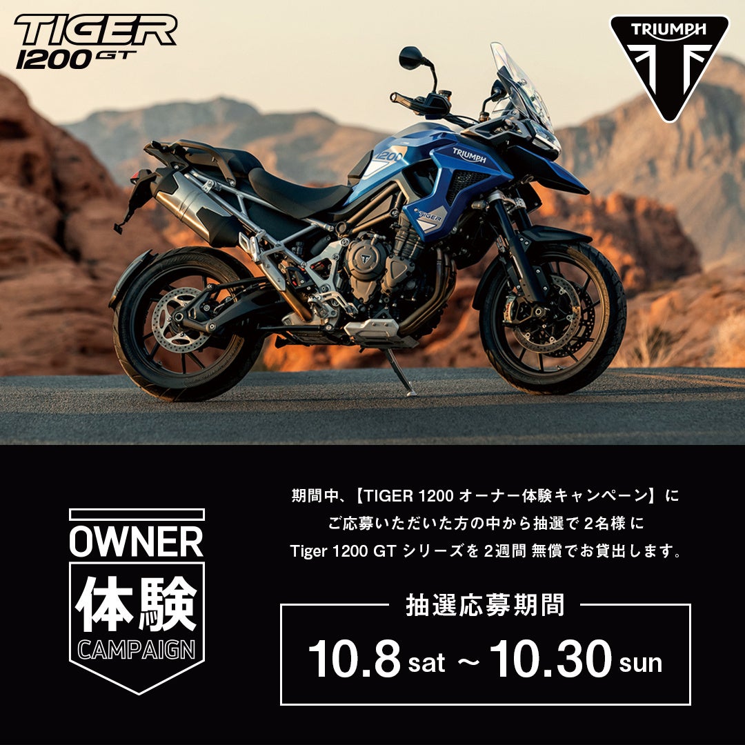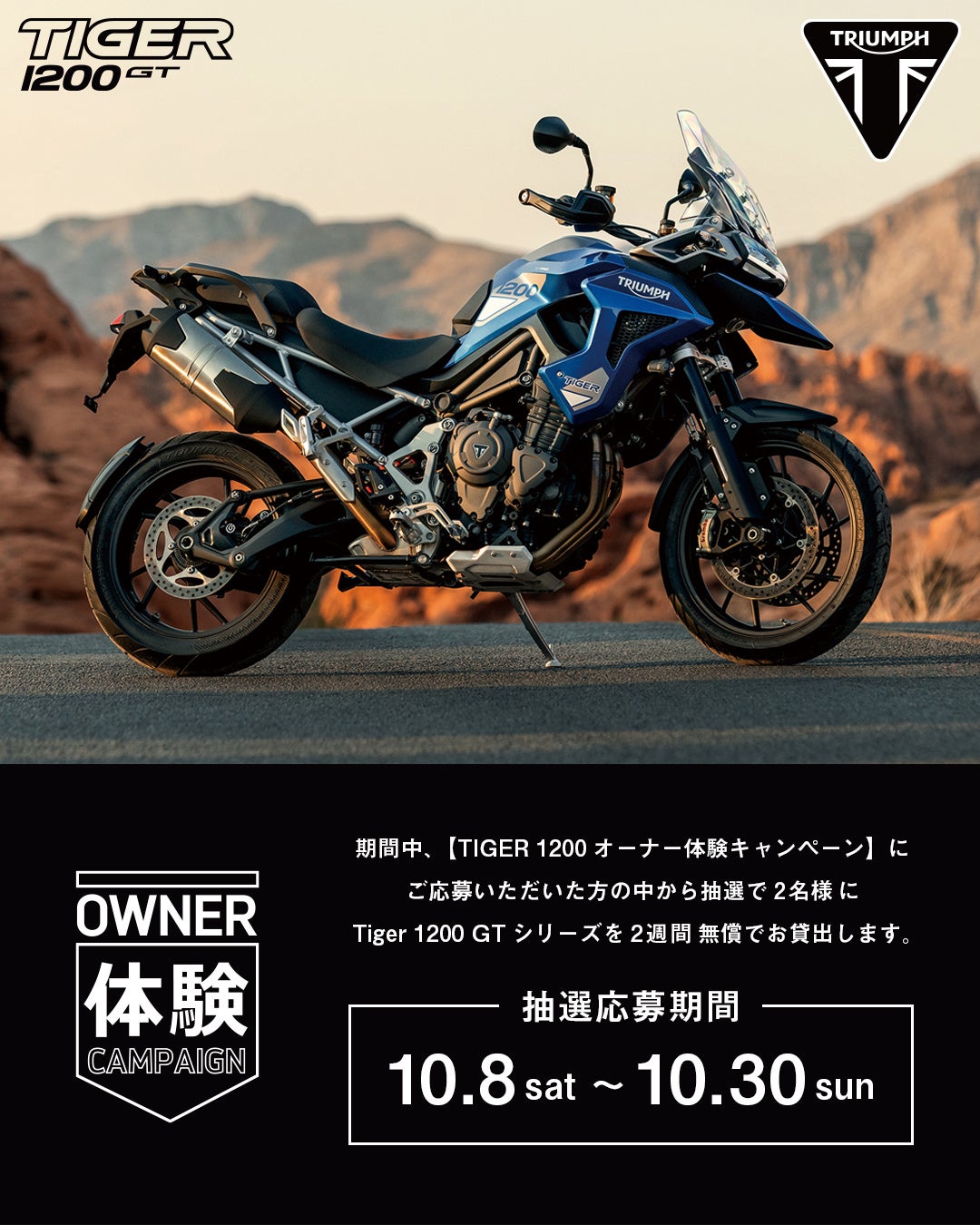 トライアンフモーターサイクルズジャパン株式会社(本社:東京都港区海岸 代表取締役社長:大貫陽介)は、アドベンチャーツーリングに最高のこの時期。10月8(土)から、【ADVENTURE BIKE FAIR】ならびに【TIGER 1200 オーナー体験キャンペーン】を同時開催することをお伝えいたします。