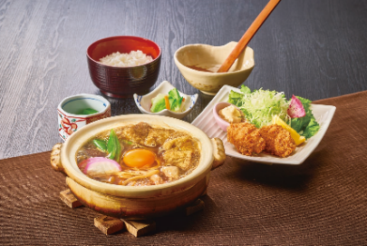 こだわりの豚ロース使用。揚げたてのとんかつを、陶板で卵とじに。アツアツでいただく人気定食メニュー。