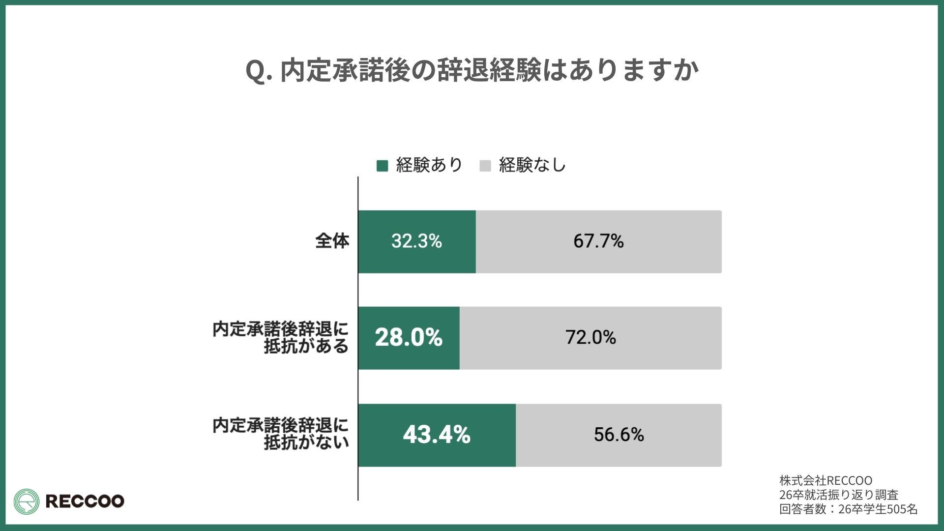 【26卒就活動向速報】約7割が「内定承諾後辞退に抵抗」を感じつつも、3人に1人が実際に辞退