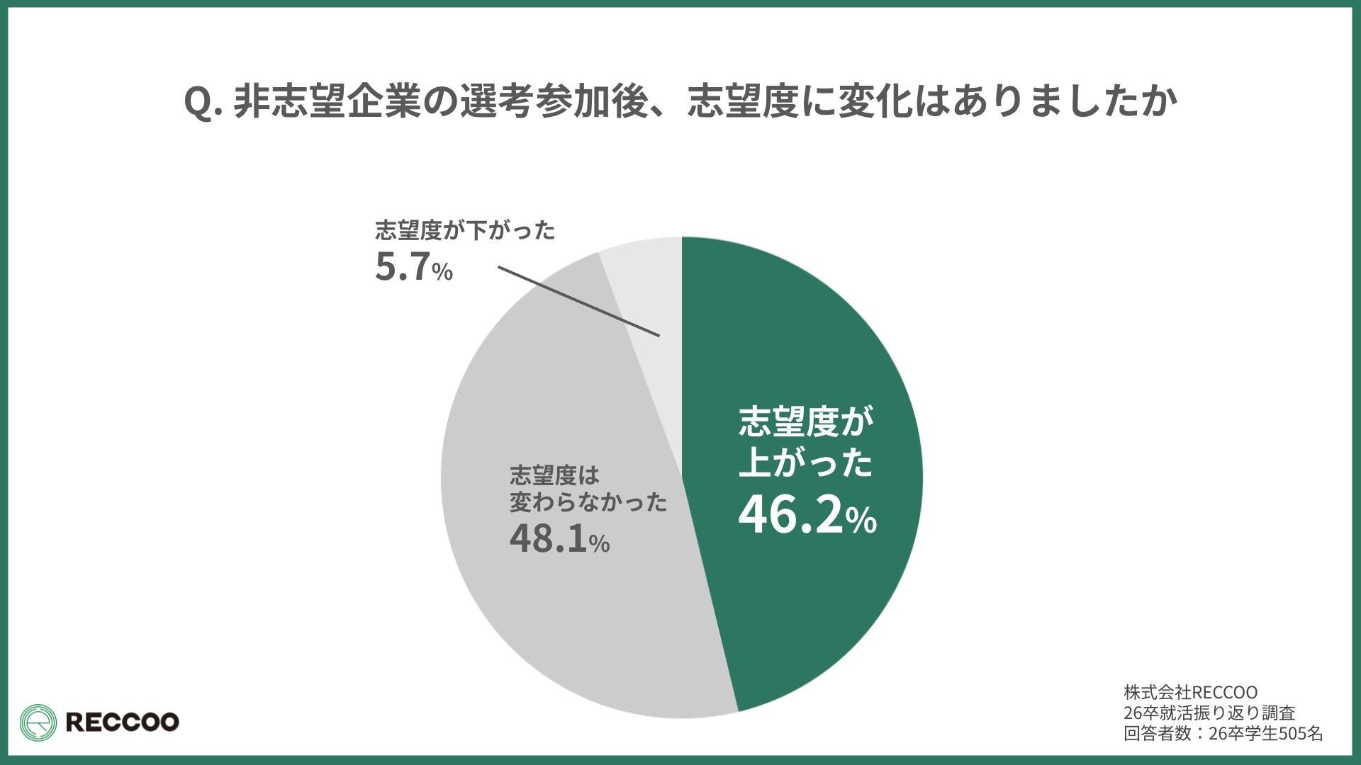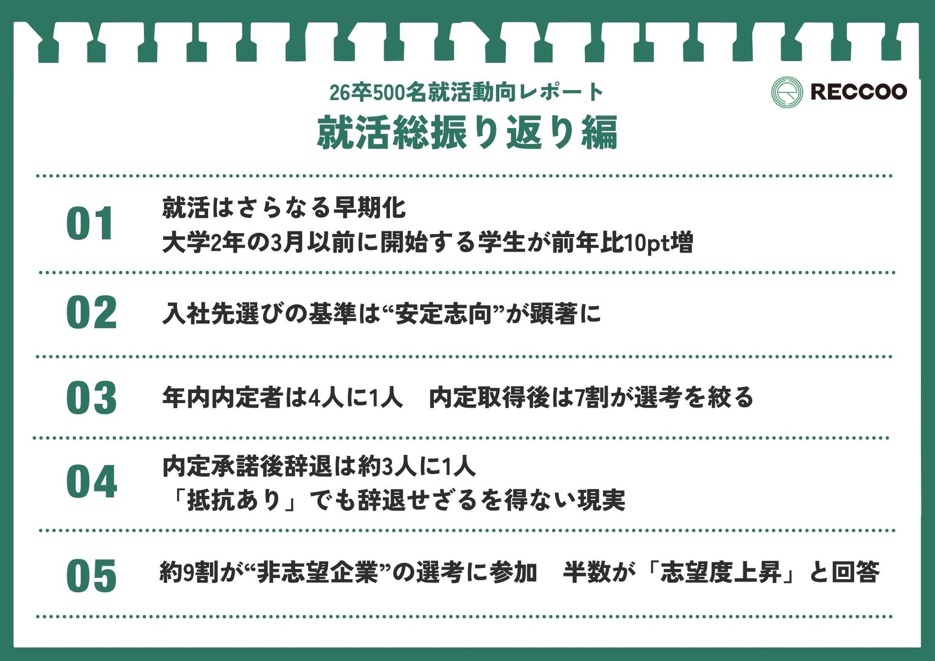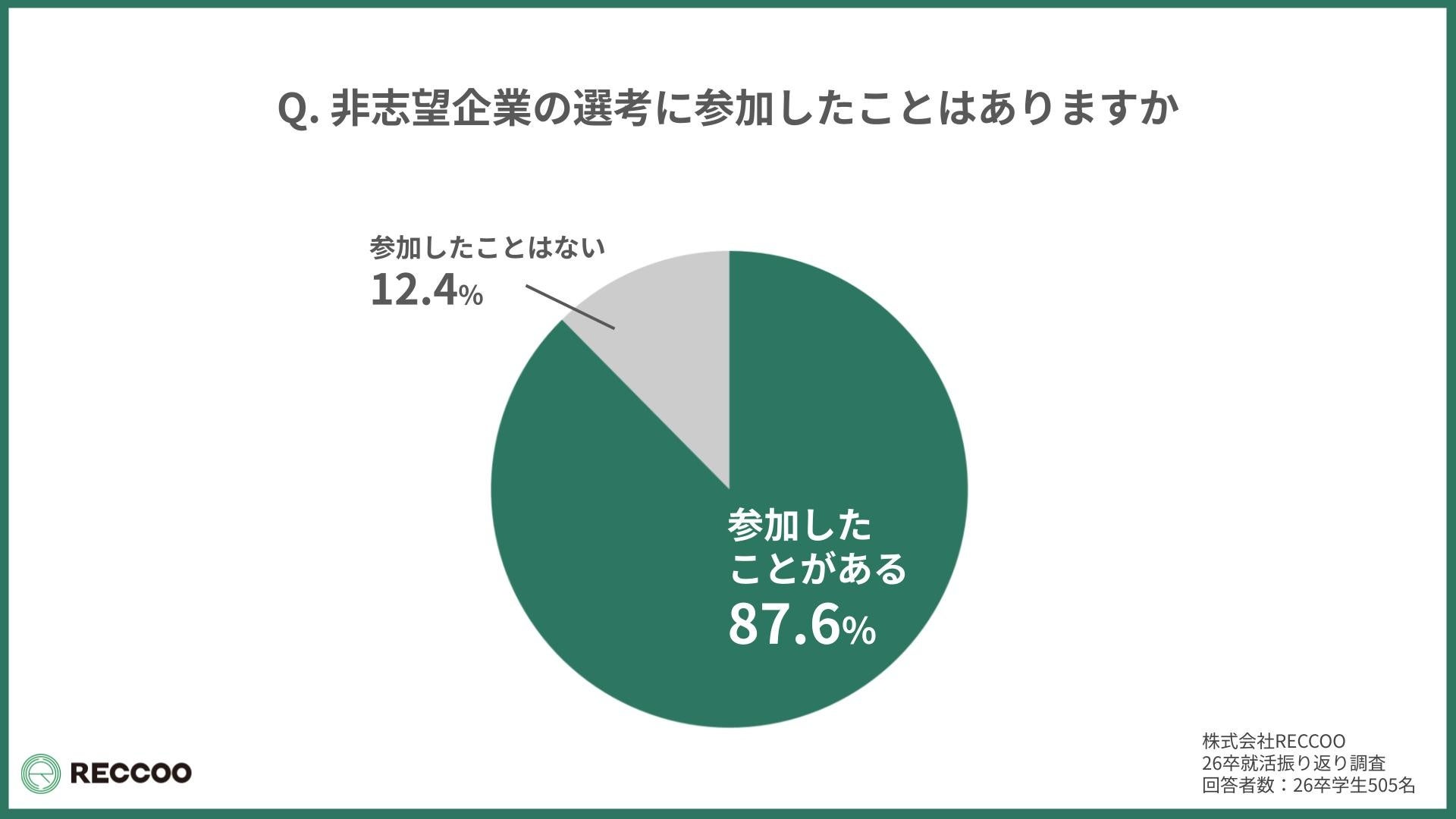 株式会社RECCOO(本社:東京都渋谷区、代表取締役 出谷昌裕)は、2026年卒業予定の大学生505名を対象に「就活開始から入社先決定に至るまで」に関する調査を実施し、『26卒就活総振り返りレポート』として公開しました。