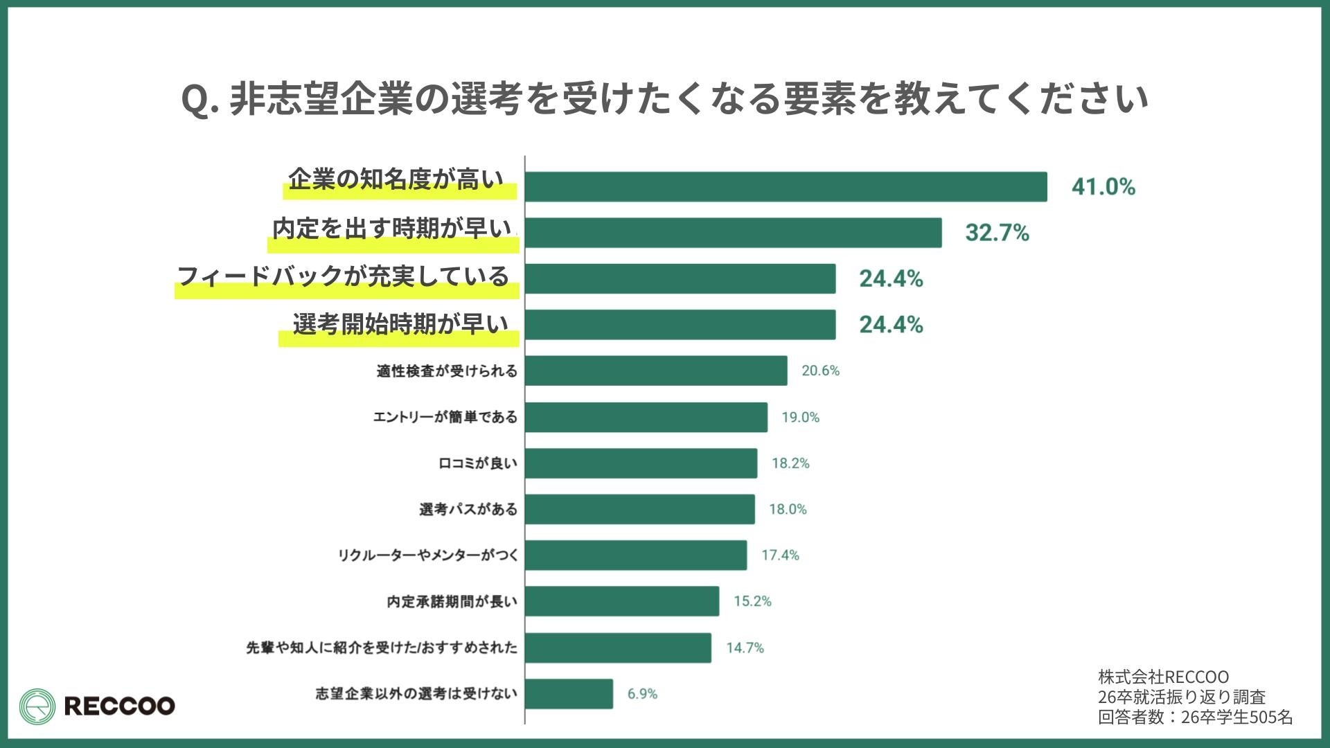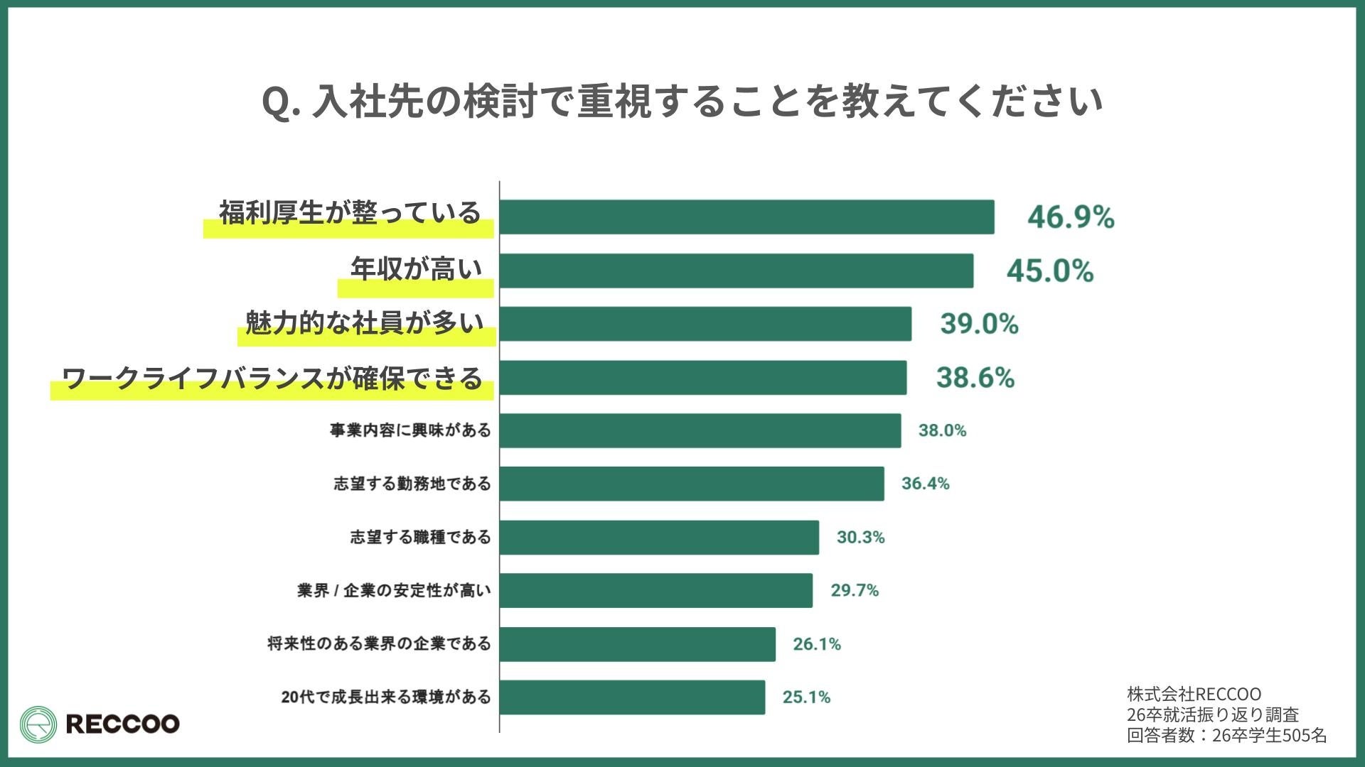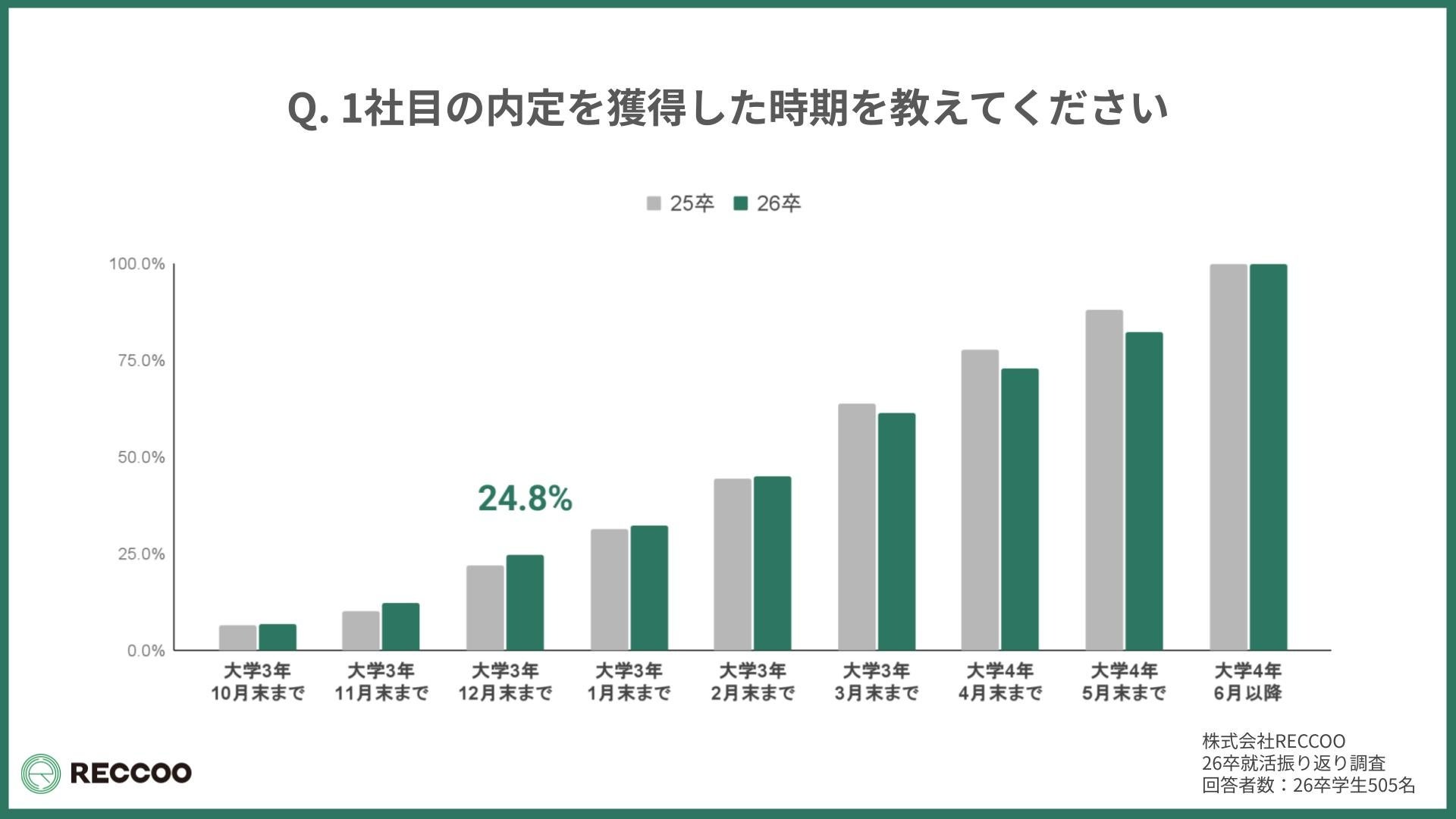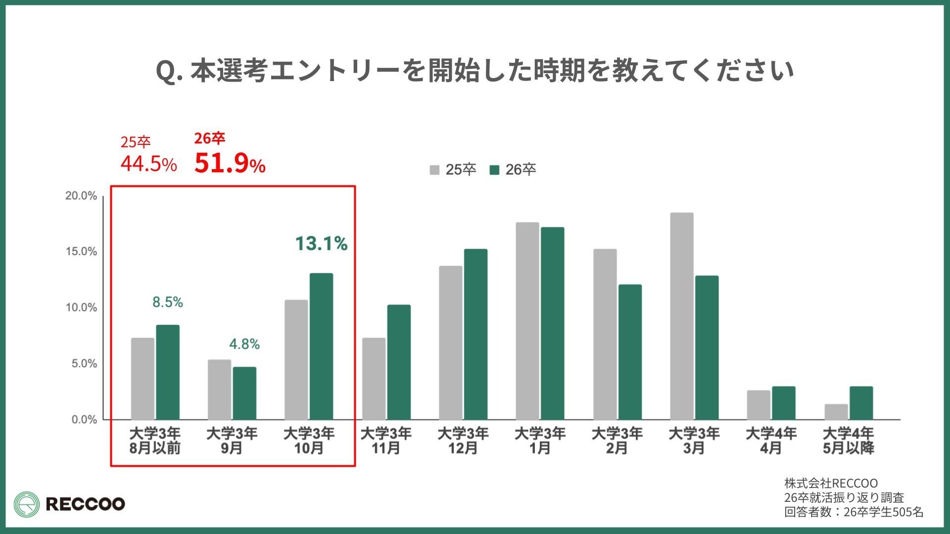 株式会社RECCOO(本社:東京都渋谷区、代表取締役 出谷昌裕)は、2026年卒業予定の大学生505名を対象に「就活開始から入社先決定に至るまで」に関する調査を実施し、『26卒就活総振り返りレポート』として公開しました。