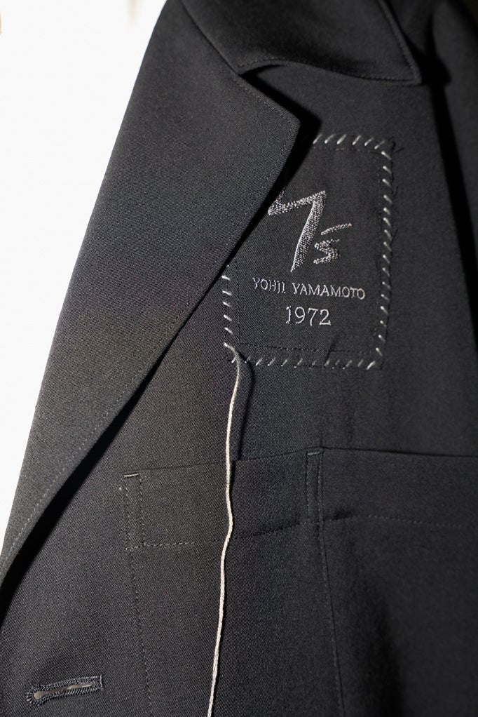 Y'sのシグネチャーであるウールギャバジンやコットンブロードの生地で仕立てる、男性服を起点としたワイズ・クラシックなシルエット。内なるパンクネスが表出したように、そのシルエットそれぞれに、ステッチで無秩序に取り付けられた印象的な「Y's 1972」タグ。