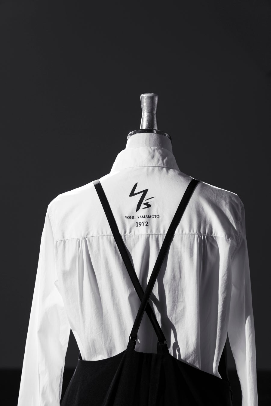 Y’sのシグネチャー、コットンブロードのシャツ。ノーカラーのロングシャツや、襟元はオーセンティックでバックスタイルのテールとドレープが印象的な1枚でも着ることのできるビッグシルエットのシャツ、ダブルボタンのシンプルでワークウェアライクなシャツなど、シンプルなシルエットに「Y's 1972」タグが配されています。