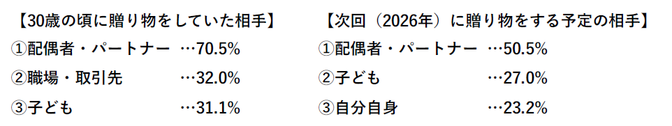 ■かつて一般的だった “職場の義理チョコ” は32%から9%へと大きく縮小。一方で、毎年配偶者・パートナーへ贈り物をしている人は62.1%と、身近な家族への愛情や感謝を伝える機会としてのバレンタインデーの役割は継続