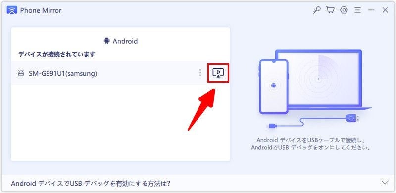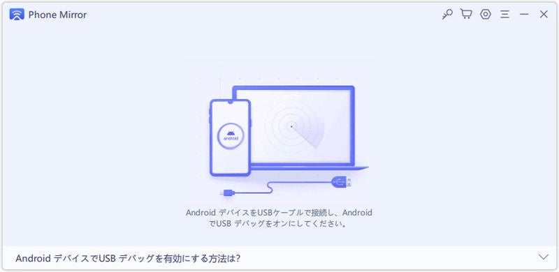 Step 1、Phone Mirrorをパソコンにダウンロードして起動し、Androidスマホをパソコンに接続します。
