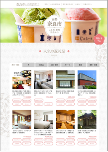現在奈良市では、ふるさとチョイス、楽天ふるさと納税等、数多くのふるさと納税ポータルサイトに登録をしていますが、奈良市の魅力や使途について、正しく伝えるポータルサイトに課題がありました。今回は、プラットフォームとなるポータルサイトの拡充を図ることで、10億円突破を目指します。