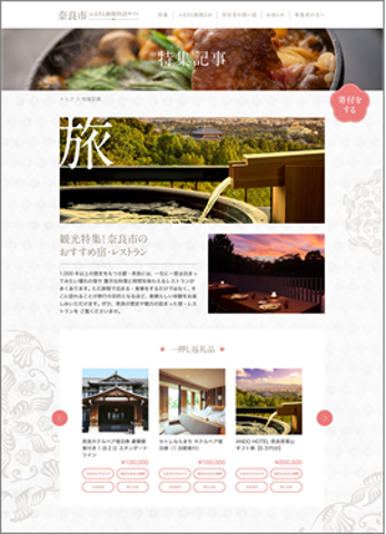 寄附、返礼品、そして次は「実際に奈良に行きたい!」旅情を盛り上げる特集コンテンツも。