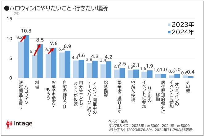 株式会社インテージ(本社:東京都千代田区、代表取締役社長:檜垣 歩、以下インテージ)は、全国の15歳から79歳の男女(5,000人)を対象に実施した「ハロウィンに関する調査結果」を公開します。