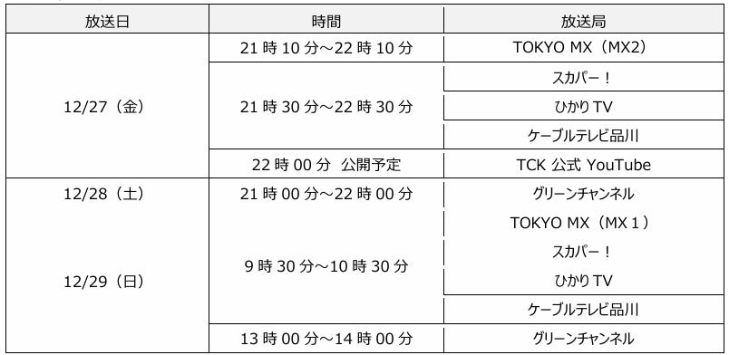 本番組は、12月27日(金)のTOKYO MX(MX2)を皮切りに東京大賞典当日(12/29)までスカパー!やグリーンチャンネルなどで放送されるほか、TCK公式YouTubeでも配信予定です。