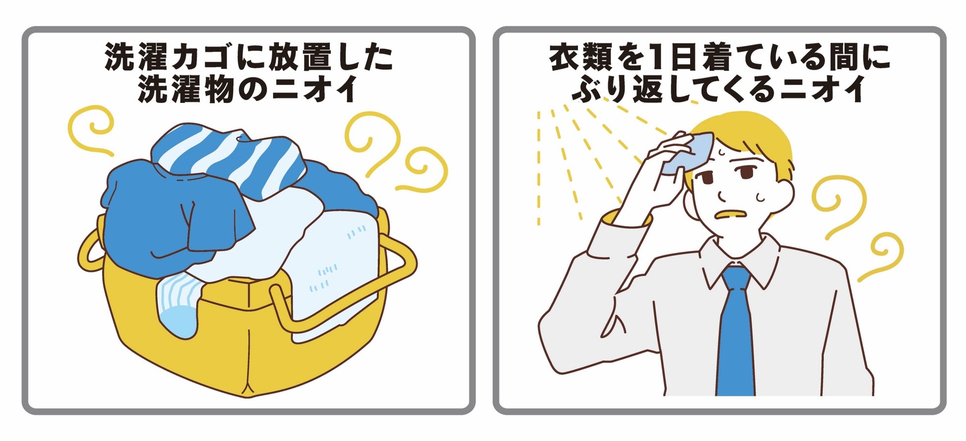 洗濯カゴに放置した洗濯物や、衣類を1日着ている間にぶり返してくる汗のニオイも気になりません。