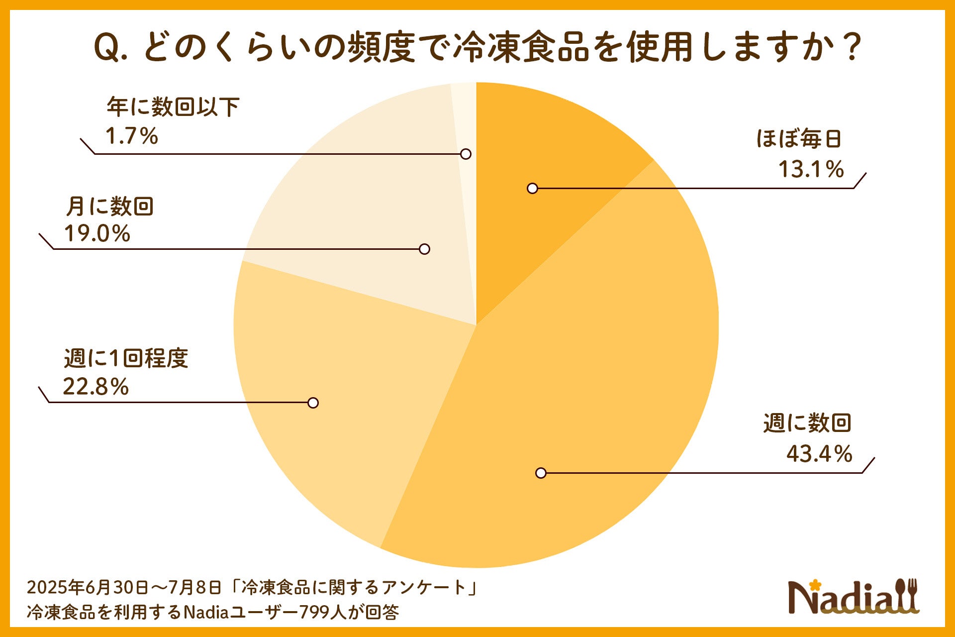 また、使用頻度については、「ほぼ毎日」「週に数回」「週に1回程度」が合わせて79.3%という結果に。普段の食卓において、冷凍食品が定期的に取り入れられていることがわかりました。