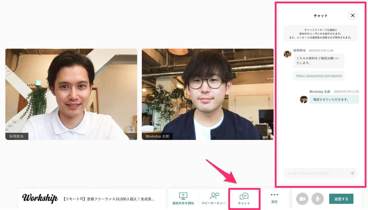 Workshipではオンライン面談機能を提供していますが、3月10日よりチャット機能も利用可能になりました。