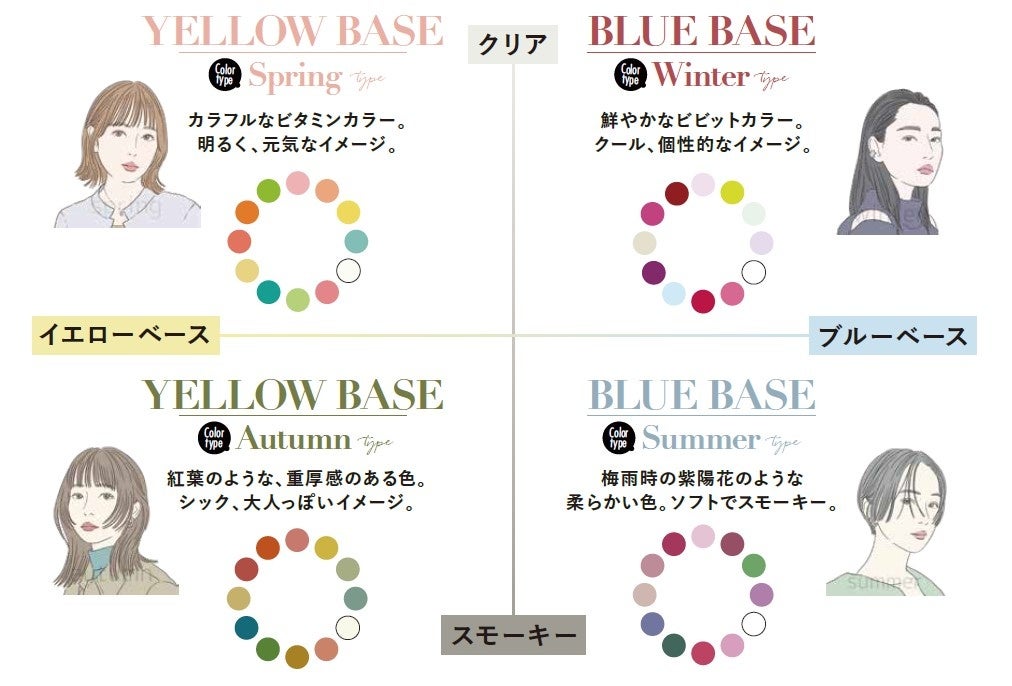 持って生まれた肌や瞳、髪の色などの個性と調和し、魅力や好印象を引き出す色「パーソナルカラー」を4シーズンに分けて診断。