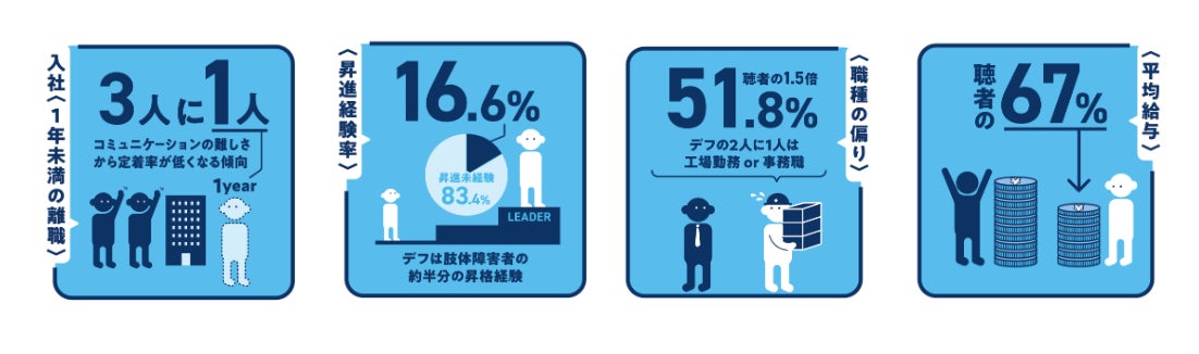 事業内容:「優劣のものさしを変える」というミッションのもと、ろう難聴者をはじめとする対話に困 難を抱える人たちの社会参加を支援する事業。教育、研修、コンサルティング、メディア制作など 多方面で「対話の壁」を取り除く活動を展開。