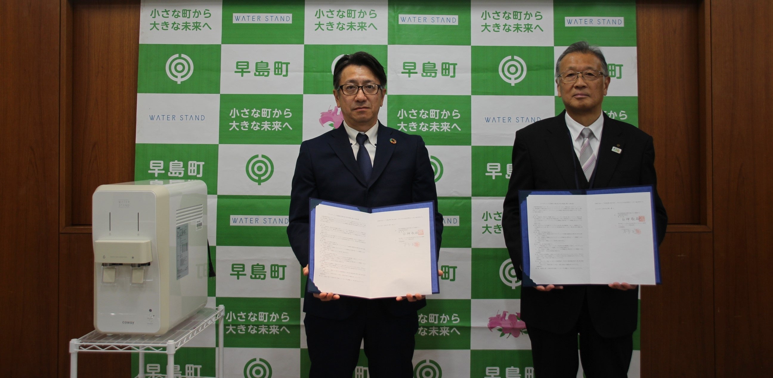 本協定は、早島町教育委員会と当社が連携し、ペットボトル等の使い捨てプラスチック製品の使用抑制を通じて、プラスチックごみの削減および熱中症予防の推進を目的として締結するものです。