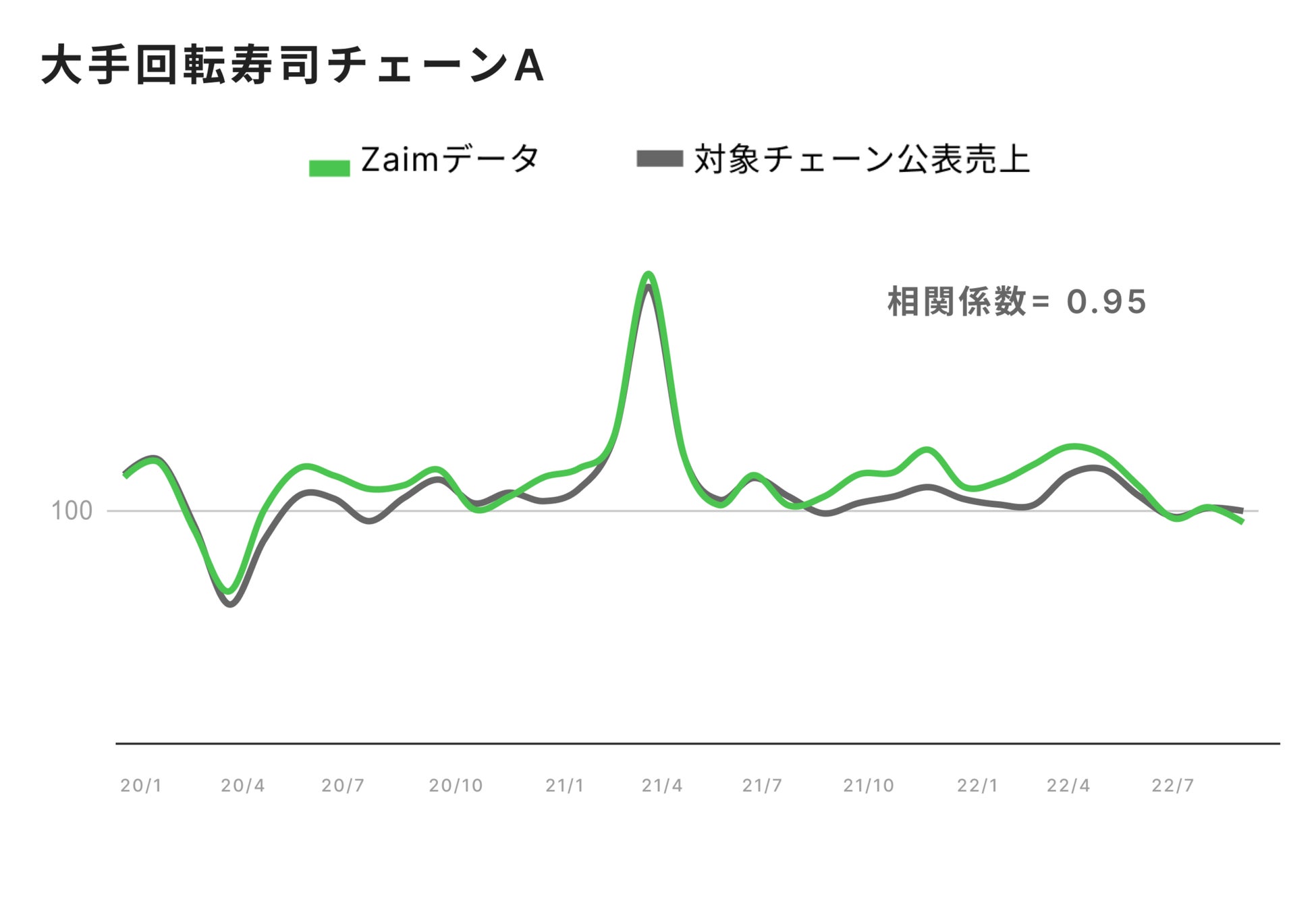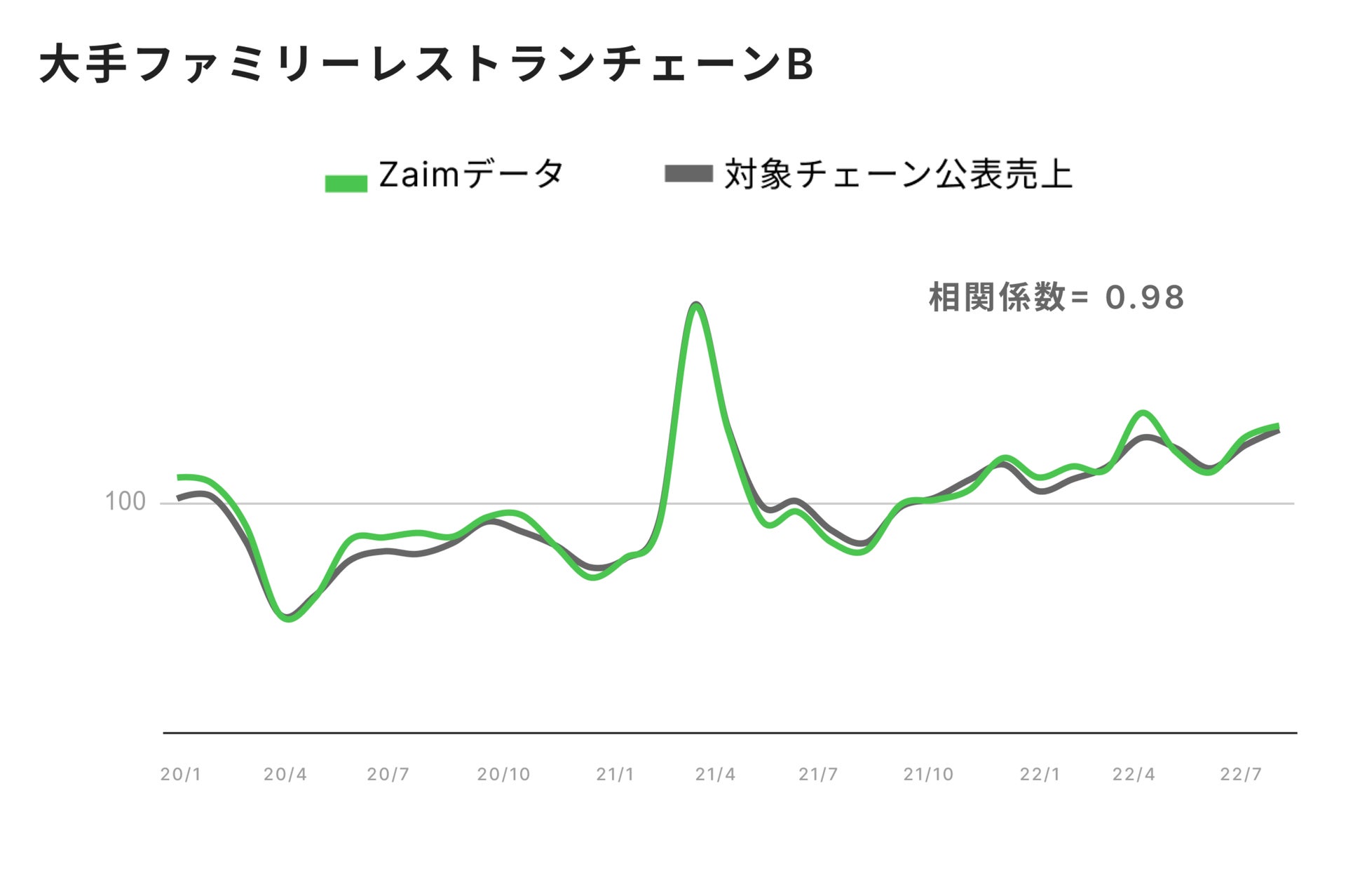 ※2 2019 年 1 月~ 2022 年 9 月までの各社の公表売上前年同月比の数値と、Zaim のデータを比較して相関を取得。
