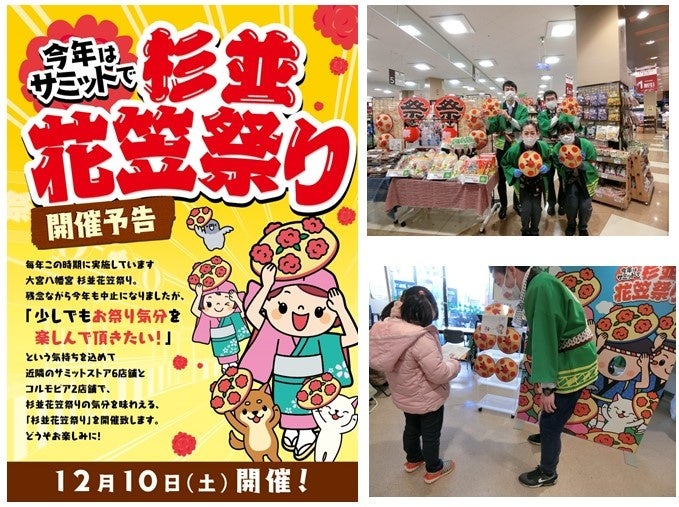 1990年より毎年12月に、サミットが東京都杉並区の大宮八幡宮で開催している「大宮八幡宮 杉並花笠祭り」は、新型コロナウイルス感染症拡大防止の観点から、今年度も開催を中止することが決定いたしました。しかし、例年2万人を超える方々にお楽しみいただいているお祭りであることから、少しでも「花笠祭り」の雰囲気を味わっていただこうと、大宮八幡宮周辺のサミットストア6店舗の店内で、昨年に引き続き「今年はサミットで杉並花笠祭り」と題し、お客様にご参加いただける楽しいイベントを開催いたします。