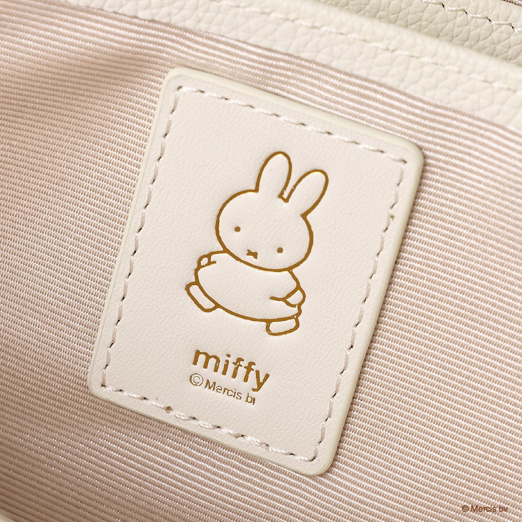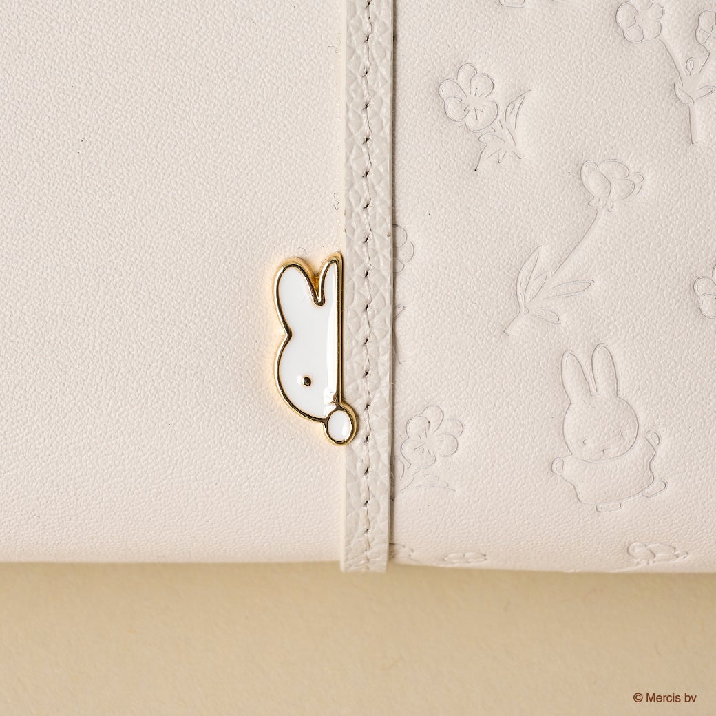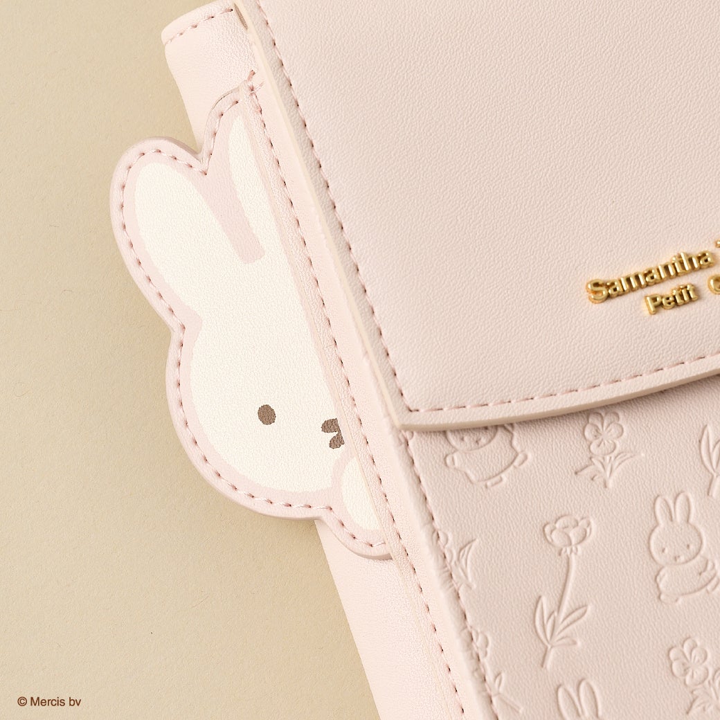 スマホショルダーバッグはお財布と同様にお散歩中のミッフィーと花柄をあしらった型押しデザインで世界観を表現。サイド部分にはこちらを覗いているミッフィーがポイントで、ミッフィーファンにはたまらない心を癒すデザイン。
