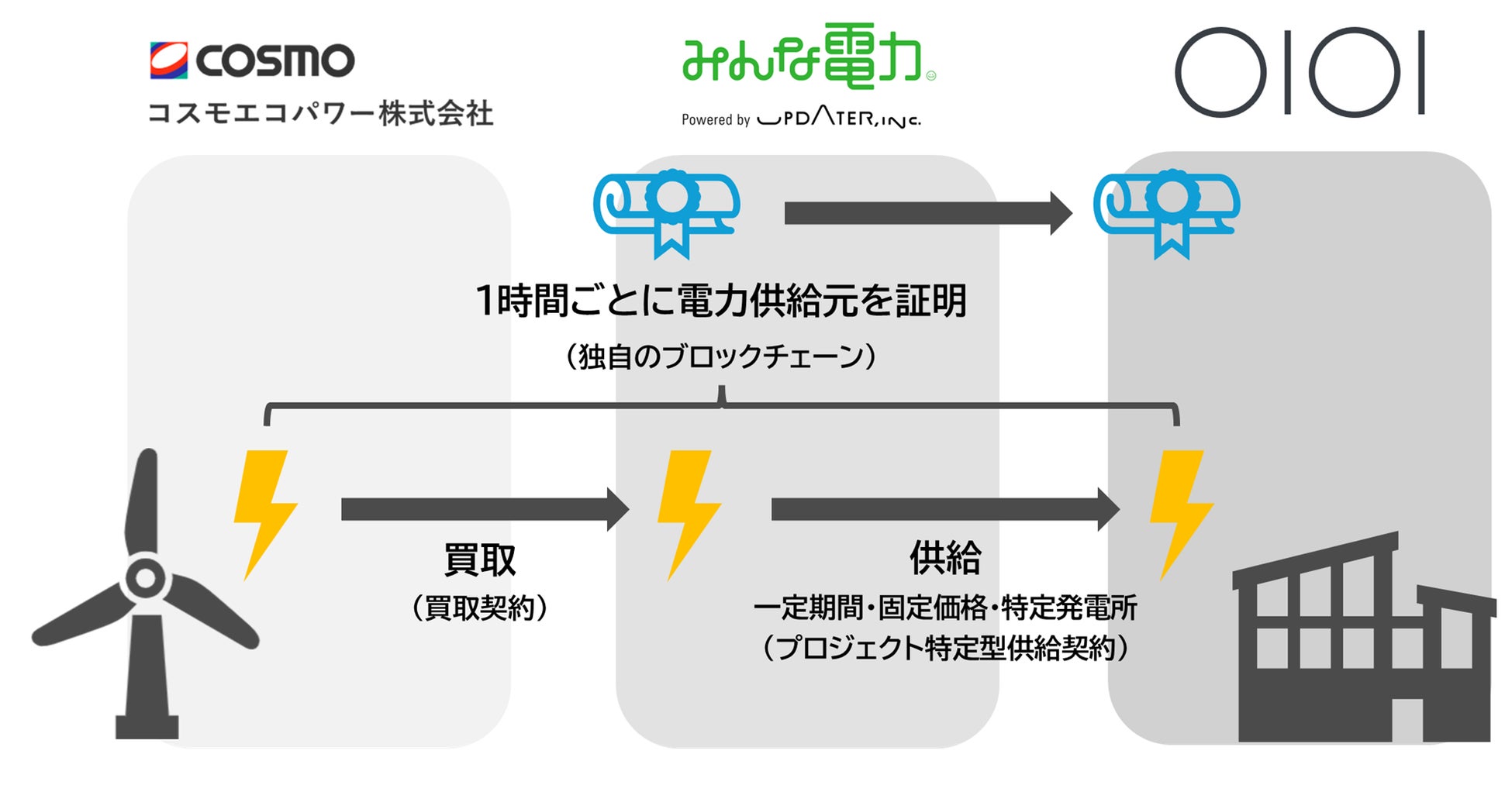 本取り組みは、コスモエコパワーが北海道小樽市で開発・建設したNon-FITの風力発電所・石狩湾新港風力発電所(北海道小樽市銭函5丁目他)から創出される電気の一部を、UPDATERの気候テック事業「みんな電力」が買い取り、新宿マルイ 本館へ再エネ電気の供給を行う計画です。今後も3者一同、引き続きCO2排出量ゼロの実現に向けて取り組みを推進するとともに、持続可能な社会の実現に貢献してまいります。