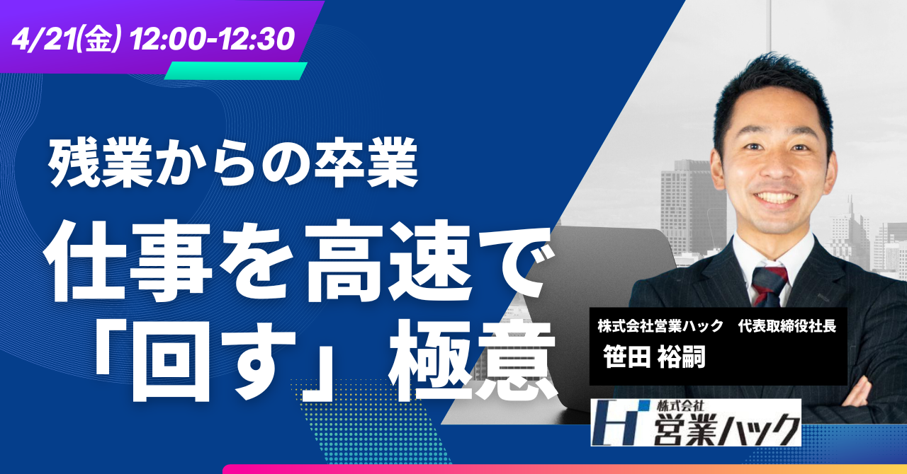 もう残業しない。仕事を高速で回す極意を学べるショートウェビナーを開催します【4/21(金)12:00~無料ウェビナー】